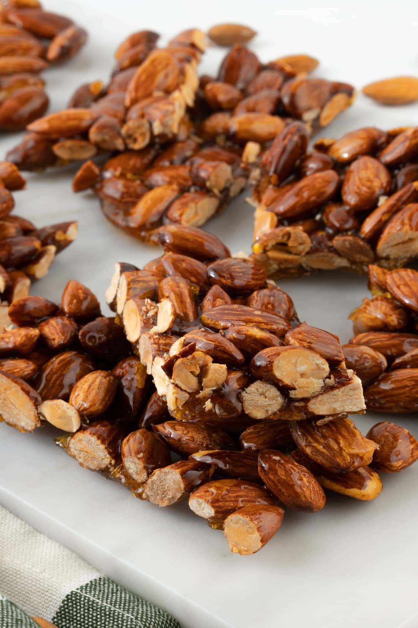 DessertsAlmond CrunchAlmond Crunch is a quick and easy Christmas dessert that is perfect for eating during the holiday season, also great as a homemade Christmas gift.Difficulty EasyPreparation 5 minutesCooking 15 minutesServings for 6 people Send × Facebook Twitter Email Pinterest Save PrintThe Almond Crunch, a quintessential Italian Christmas treat, embodies the rich culinary heritage of Italy, a land renowned for its exceptional cuisine. As the festive season approaches, kitchens across Italy are infused with the aroma of roasted almonds and caramel, signaling the time-honored tradition of making Almond Crunch. This delightful confection, known locally as ‘Croccante di Mandorle‘, has its roots deep in Italian culture, often associated with the warmth of family gatherings and the joy of festive celebrations.The history of the Recipe for Almond Crunch in Italy dates back centuries, intertwining with the country’s love for almonds. Almonds, revered for their nutritional value and versatility, have been a staple in Italian cooking, and their incorporation into this sweet treat is a testament to the ingenuity of Italian cooks. The recipe’s simplicity – a harmonious blend of almonds, sugar, and often a hint of honey or vanilla – belies the skill required to perfect its texture and flavor. The key to its irresistible allure lies in the precise caramelization of sugar and the meticulous integration of roasted almonds, resulting in a crunchy, golden treat that’s both rustic and refined.Christmas in Italy is a time for indulgence, and Almond Crunch is a centerpiece in this festive indulgence. It’s not just a confection; it’s a celebration of Italian craftsmanship and tradition. Every region in Italy has its own variant of this classic recipe, each adding a unique touch, be it a sprinkle of sea salt, a dash of lemon zest, or a drizzle of dark chocolate. This versatility makes Almond Crunch a canvas for creativity, allowing each family to infuse their personal touch into this beloved recipe.Sharing Almond Crunch during Christmas is more than an exchange of sweets; it’s a sharing of heritage, a gesture of love and togetherness. As you embark on making this classic Italian Christmas delicacy, remember that you’re not just preparing a treat; you’re weaving a piece of Italian Christmas tradition into your festive celebrations. The joy of crafting Almond Crunch lies in the anticipation of the smiles and warmth it brings, making it a cherished part of the holiday season.Ingredients for 6 people300 g of Almonds with skin150 g of White SugarCopy Ingredients ListOpen in AppMethodTo prepare the Almond Crunch first transfer the almonds to a baking sheet covered with parchment paper and toast them in the oven at 340°F (170°C) for a few minutes. Meanwhile, devote yourselves to the caramel: pour the caster sugar into a large saucepan and melt it over medium heat.When the sugar has caramelized, add the toasted, still-warm almonds and stir so that they are completely enveloped by them. Then pour it into a baking dish covered with parchment paper, leveling it out and letting it cool to room temperature. When the crisp is still slightly warm, being careful, cut it into bars of the size and shape you prefer.When the bars have cooled well here is your Almond Crisp is ready to be served and enjoyed. Finally, remember to download our App with exclusive content and fewer ads!Variations and AlternativesIf you want, you can add cinnamon or grated orange peel to enhance the flavor of the Almond Crunch. Additionally, you can also incorporate some candied fruit if you prefer.TipsTo make the cleaning process easier, we suggest filling the pot with water and bringing it to a boil before washing. This will help melt the caramel, allowing for easier removal.StorageYou can store the Almond Crisp in a cool and dry place, wrapped in wax paper and placed in a tin box, for several months.Comments ★ ★ ★ ★ ★ × 4 / 5 You need to enable JavaScript to vote Cancel reply Leave a comment