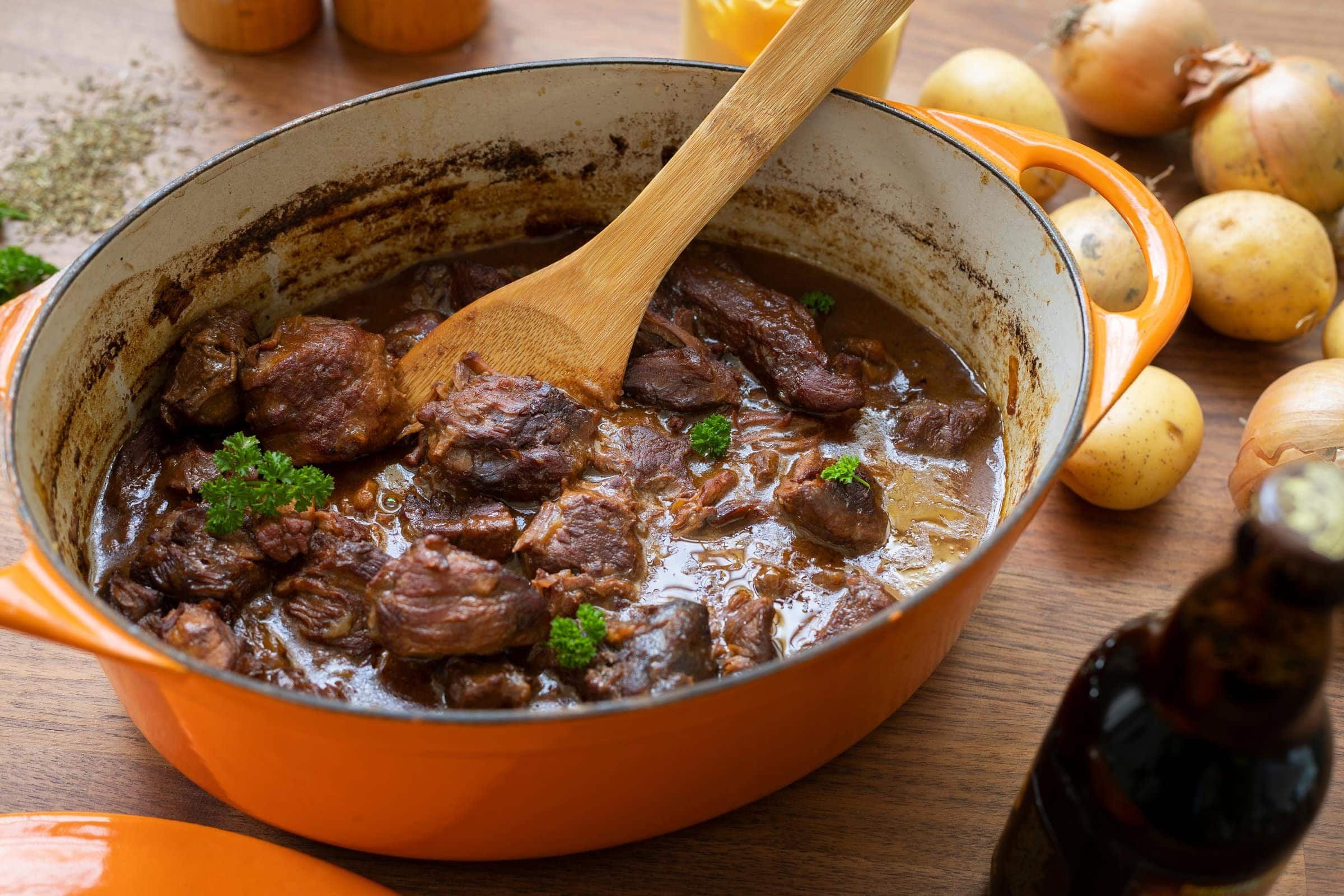 MainsAosta Valley Carbonade: Red Wine Braised Beef StewCarbonade is a beef stew with aromatic herbs and spices, typical of the Aosta Valley and Francophone countries such as Belgium and the southeast of France.Difficulty EasyPreparation 20 minutesCooking 2 hours and40 minutesServings for 6 servings Send × Facebook Twitter Email Pinterest Save PrintThe Carbonada is a delicious main dish of Belgian origin that has become one of the characteristic dishes of the culinary tradition of the Aosta Valley. It is a beef stew with aromatic herbs and spices that is typically served with Polenta or enriched with local Fontina cheese, known as Polenta Concia. The difference between the Carbonade Valdostana and the Belgian Carbonade is simple: in the Italian version, the beef is braised in red wine, while in the Belgian version, traditional Belgian beers are used.Regardless of which version you choose to make, rest assured that the Beef Carbonade will captivate you We recommend preparing it for a Sunday lunch with the whole family or for a dinner with friends, preferably during the coolest days of the year!If you love meat-based second courses, also try the Barolo Braised Beef, Beef Stroganoff, and Pork Stew with Onions. Now, here is the recipe for the Carbonada!Ingredients for 6 servings800 g of Beef pulp400 ml of Red Wine30 g of Butter1 Onion1 litro of Beef Broth1 costa of Celery5 foglie of Bay5 bacche of Juniper3 foglie of Sage2 Cloves1 rametto of Thyme1 stecca of Cinnamonq.b. of Nutmegq.b. of All Purpose Flourq.b. of Table SaltCopy Ingredients ListOpen in AppMethodTo prepare Carbonada, start by trimming any excess fat from the meat, then cut it into medium-sized cubes and coat them lightly with flour. This will help create a nice crust when searing the meat, enhancing the overall flavor of the dish.In a large saucepan, melt the butter over medium heat. Meanwhile, wash, peel, and finely chop the onion and celery. Once the butter is fully melted, add the chopped vegetables and sauté them until they become soft and translucent, releasing their flavors into the butter.When the onion begins to turn golden, add the cubed meat and brown it for a few minutes. Then, add the bay leaf, thyme, sage, juniper berries, cinnamon stick, cloves, nutmeg, a pinch of salt, and deglaze the pan with red wine. The wine will add depth and richness to the dish, so let it cook until the alcohol evaporates.Add the Meat Broth and bring it to a boil. Once the mixture starts to boil, reduce the heat to the lowest setting and continue cooking for about an hour and a half. This slow cooking allows the flavors to meld beautifully and the meat to become tender.After this time, remove the meat from the pot and keep it warm. Strain the cooking liquid to remove the spices using a food mill. Add the strained liquid back to the meat, mix well, and serve the Carbonada piping hot! This dish is traditionally enjoyed with polenta or crusty bread. Finally, remember to download our App with exclusive content and fewer ads!Variations and AlternativesIn the Belgian version of Carbonada, local beers are used instead of red wine for deglazing.TipsIf the meat dries out too much during cooking, you can add a ladle of hot water.StorageLeftover Carbonada can be stored in the refrigerator for one day in an airtight container.Comments ★ ★ ★ ★ ★ × 4 / 5 You need to enable JavaScript to vote Cancel reply Leave a comment