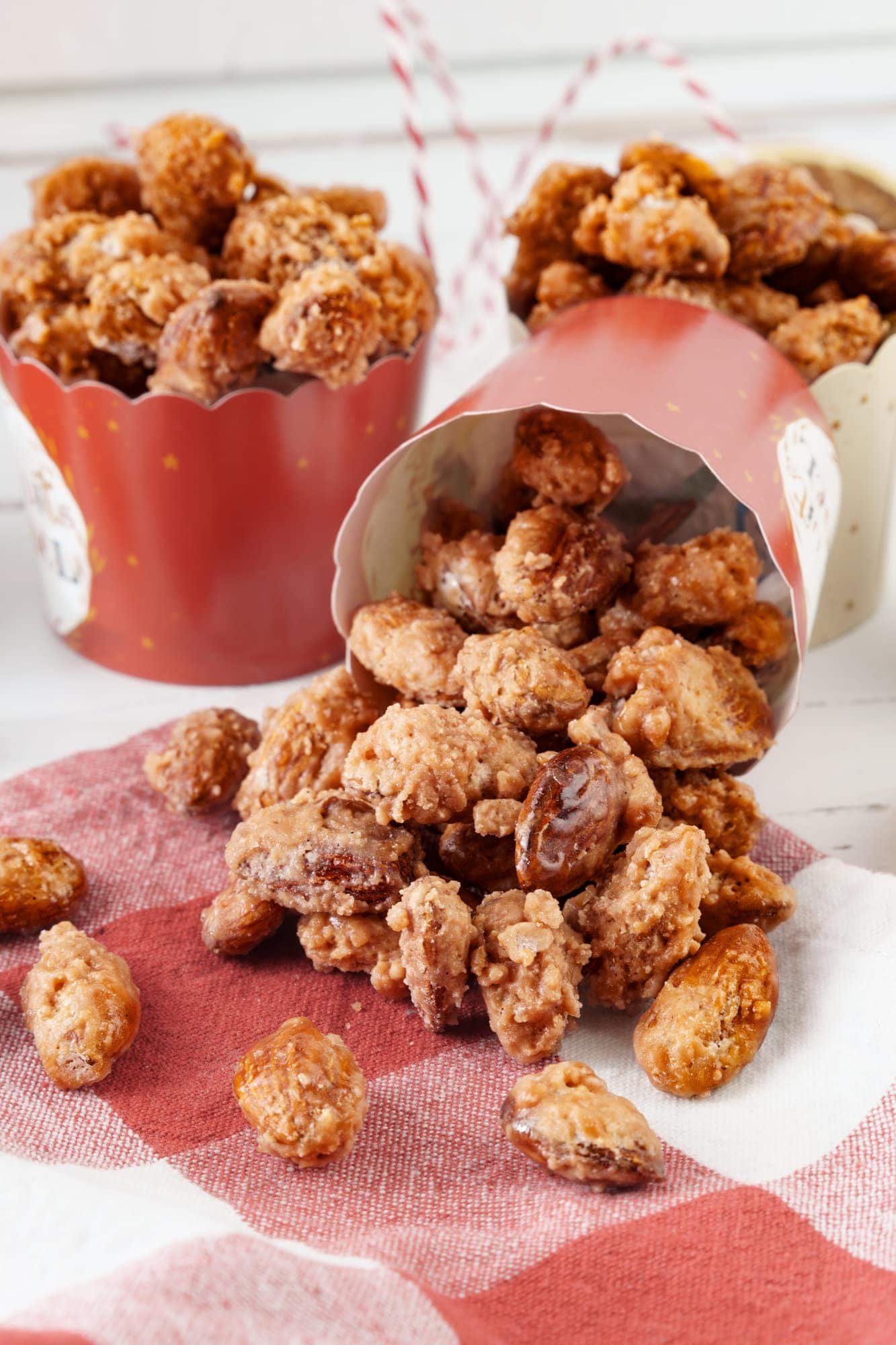 DessertsCandied AlmondsCandied Almonds or Caramelized Almonds, also known as Pralined Almonds, are a traditional Christmas dessert that is quick and easy to make. The end result will delight young and old alike.Difficulty EasyPreparation 5 minutesCooking 5 minutesServings for 8 people Send × Facebook Twitter Email Pinterest Save PrintThe Candied Almonds (Caramelized Almonds), known in Italy as “Mandorle Caramellate” are a delightful and traditional Italian Christmas treat. This recipe holds a special place in the heart of Italian culinary traditions, symbolizing the warmth and sweetness of the holiday season. Originating from the rich culinary heritage of Italy, these sugary delights have been a festive staple for generations, embodying the spirit of Italian Christmas.The tradition of candied almonds in Italy dates back centuries, evolving over time but always retaining its core essence. They are not just a dessert, but a piece of Italian history, often shared among families and friends during holiday gatherings. The process of making candied almonds is relatively simple, but it requires patience and precision to achieve the perfect balance of sweetness and crunch.The recipe starts with the finest quality almonds, which are the heart of this confection. These nuts are then coated in a caramelized sugar mixture, a process that requires constant attention to ensure a perfect glaze. The almonds are then left to cool, forming a shiny, crisp outer layer that perfectly complements the nutty flavor within. This transformation of simple ingredients into a luxurious treat is a testament to the ingenuity of Italian cooking.Candied almonds are more than just a sweet snack; they are a symbol of good luck and prosperity. In Italy, it is customary to gift these sugared nuts to loved ones during the festive season, conveying wishes of happiness and fortune. Their presence on the Christmas table is a reminder of the joy and togetherness that the season brings.This recipe not only offers a taste of Authentic Italian Christmas but also provides a chance to create lasting memories in the kitchen. Making candied almonds can be a fun and engaging activity for the whole family, bringing everyone together in anticipation of the holiday celebrations. So, let’s embark on this culinary journey and discover how to create these delightful Italian Christmas candied almonds, a treat that is sure to bring sweetness to any festive occasion.Ingredients for 8 people200 g of Almonds200 g of White Sugar100 ml of Water1 teaspoon of Vanilla ExtractCopy Ingredients ListOpen in AppMethodBegin by placing almonds and sugar inside a pan to prepare the Candied Almonds.Pour in the water and vanilla extract, then thoroughly combine all the ingredients.Set the heat to medium-high and begin stirring. Initially, the mixture will be quite runny, but soon it will start bubbling and eventually come together to form a delicious coating around the almonds.Keep stirring the mixture until the sugar starts to turn into caramel and gets a deep amber color. Don’t worry if you hear a slight crackling sound from the almonds, this is completely normal. Once the caramel is nicely formed, be very cautious and transfer the almonds onto a baking sheet lined with parchment paper. Use a wooden spoon to separate the almonds from each other as much as possible.Once the almonds have cooled down, separate any that may have clumped together. Now, your Caramelized Almonds are all set to be savored or employed as a delightful dessert topping. Finally, remember to download our App with exclusive content and fewer ads!Variations and AlternativesIf you want, you can enrich your Caramelized Almonds by adding a little cocoa powder to the ingredients. You will need to add it once the sugar is well melted.TipsOnce the flame is off you will need to stir and space the almonds out quickly when they are on the drip pan: doing so will prevent them from sticking to each other as they cool.StorageYou can store Pralined Almonds for up to a week, however, taking care to store them in an airtight container.Comments ★ ★ ★ ★ ★ × 4 / 5 You need to enable JavaScript to vote Cancel reply Leave a comment