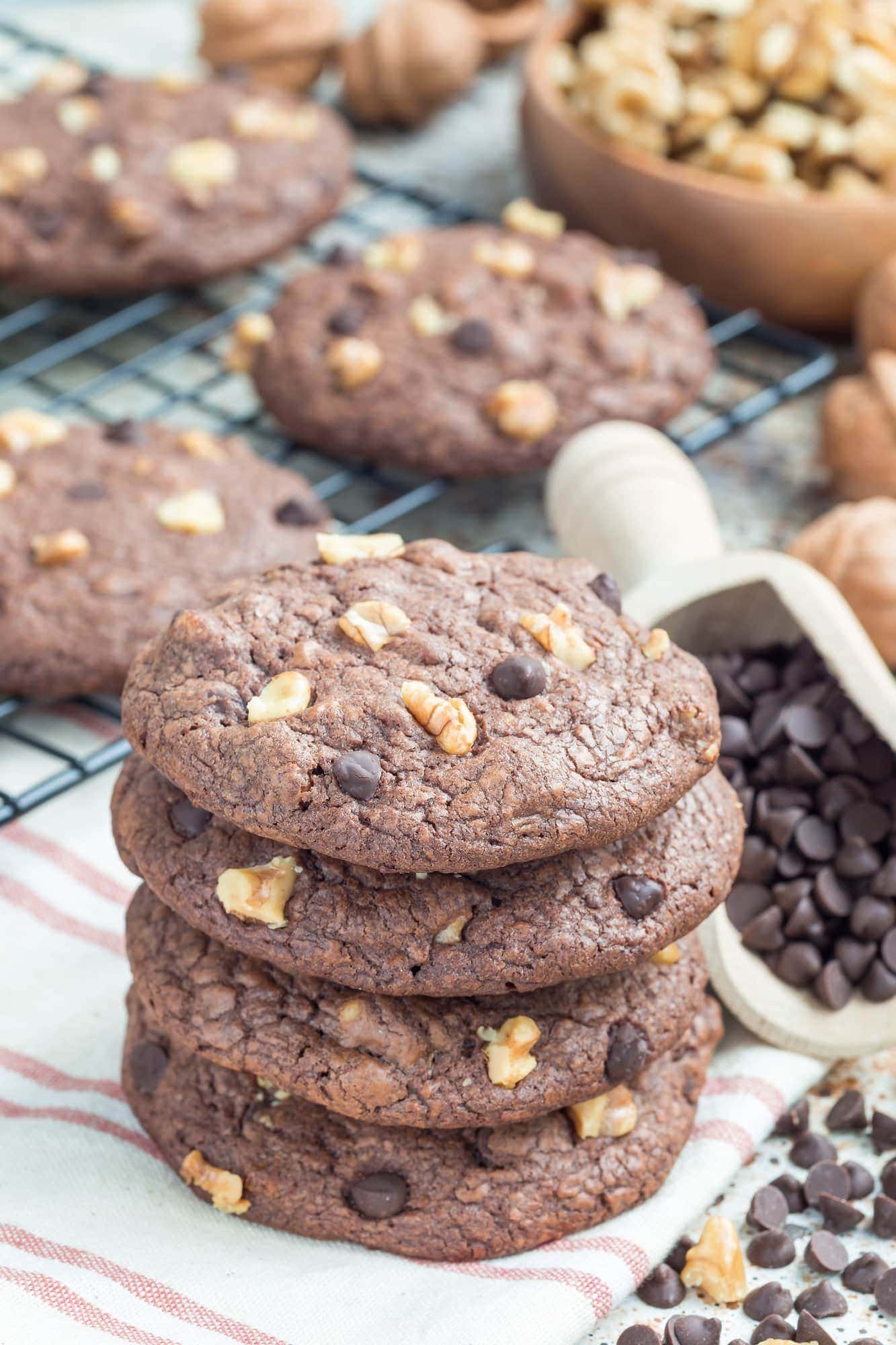 DessertsChocolate and Walnut CookiesGet ready to taste a cookie that will make your taste buds jump for joy: Chocolate and Walnut Cookies. Inspired by the classic American recipe, they are perfect for both children and adults as a delicious snack.Difficulty EasyPreparation 15 minutesCooking 12 minutesServings for Serves 4 (makes approximately 16-20 cookies) Send × Facebook Twitter Email Pinterest Save PrintCookies are among the most delicious and beloved American treats. The idea of making Chocolate and Walnut Cookies is truly a winning combination: the pairing of these two flavors and textures creates a cookie that you’ll find hard to forget. Perfect for both adults’ and children’s snack time, it’s a pure energy boost that, if consumed in moderation, (maybe) will allow you to benefit from all the walnut’s nutritional properties.Like any respectable American recipe, Butter is an essential ingredient here. Don’t try to make them lighter: you would lose most of their flavor and end up feeling quite frustrated. Simply add the classic Flour, Eggs, and Sugar to the butter, sprinkle with Dark Chocolate and some Walnuts, and you’re done.Among other Cookie Recipes that will make you lose your head, we recommend the Tyrolean Cookies, Mango Jam Cookies, and the irresistible Homemade Coconut Filled Cookies.Ingredients for Serves 4 (makes approximately 16-20 cookies)2 Eggs80 g of Butter200 g of Dark Chocolate50 g of Chocolate Chips100 g of Sugar40 g of All Purpose Flour100 g of Walnuts1 cucchiaino of Pandorino1 pizzico of SaltCopy Ingredients ListOpen in AppMethodTo prepare Chocolate and Walnut Cookies, start by melting the chocolate with butter using a double boiler method (bain-marie).Separately, using an electric mixer, beat the eggs with sugar until light and fluffy, creating a pale and foamy mixture.Gradually pour in the melted chocolate, then add flour, baking powder, and salt, mixing well to combine.Roughly chop the walnuts with a knife and add about two-thirds of them to the batter, stirring to distribute them as evenly as possible.Line a baking sheet with parchment paper and, using two spoons, form well-spaced mounds of dough on the prepared sheet.Sprinkle the remaining walnuts and chocolate chips on top of each cookie and bake at 180°C (350°F) for 12 minutes.Allow the cookies to cool completely before serving. Finally, remember to download our App with exclusive content and fewer ads!Variations and AlternativesYou can substitute walnuts with your favorite nuts. Chocolate pairs particularly well with pecans and hazelnuts.TipsWhen fresh out of the oven, these Chocolate and Walnut Cookies will still be soft. Just let them cool on the baking sheet without moving them to achieve the perfect chewy texture.StorageThese Chocolate and Walnut Cookies can be stored in an airtight tin container for 4-5 days.Comments ★ ★ ★ ★ ★ × 5 / 5 You need to enable JavaScript to vote Cancel reply Leave a comment