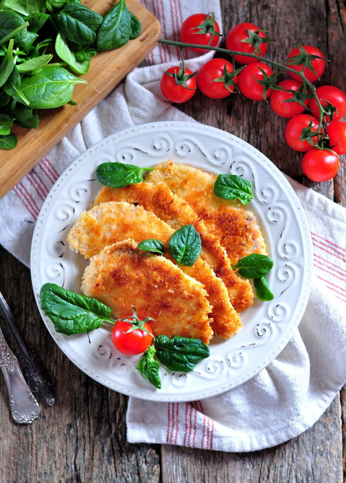 MainsCrispy Baked Chicken BreastCrispy Baked Chicken Breast is a quick and easy way to prepare classic breaded chicken breast in a lighter, super tasty version!Difficulty EasyPreparation 10 minutesCooking 25 minutesServings for 6 servings Send × Facebook Twitter Email Pinterest Save PrintIn this recipe, we’ll show you how to easily and quickly make Crispy Baked Chicken Breast that tastes just as good as pan-fried: these Crispy Breaded Chicken Cutlets in the Oven are an excellent light and tasty alternative to the classic Chicken Cutlets cooked in a pan with oil or butter – they’re so good you won’t even notice the difference! Because, let’s be honest, we all want to enjoy Baked Chicken Cutlets that taste as good as the pan-fried ones, but achieving the same level of crispiness is really challenging!This Crispy Breaded Chicken Breast in the Oven is one of those perfect dishes for family lunch or dinner – light yet flavorful! If you have children (or if you’re particularly fond of comfort food), we recommend serving these Crispy Baked Chicken Breasts with Roasted Potatoes. If you’re watching your calorie intake, the Crispy Baked Chicken Breast pairs perfectly with a salad or vegetables!If you’re looking for other Flavorful Chicken Breast Recipes, we recommend trying the Marinated Chicken Breast, Herb-Crusted Chicken Breast, and Coffee-Sauce Chicken Breast! And now, let’s get straight to the Crispy Baked Chicken Breast recipe!Ingredients for 6 servings100 g of Bread Crumbs50 g of Parmesan Cheese grated4 Chicken Breast1 Lemon Juiceq.b. of Extra Virgin Olive Oilq.b. of Table Saltq.b. of Black PepperCopy Ingredients ListOpen in AppMethodTo prepare the Crispy Baked Chicken Breast, take the chicken breasts and cut them lengthwise in half to obtain two thin cutlets. Take two medium-sized bowls: in one put the breadcrumbs, while in the other combine lemon juice, oil, salt and pepper, and whisk well to blend all ingredients together.Dip the chicken breasts in the oil and lemon emulsion, then coat them in the breadcrumbs mixed with grated cheese, pressing firmly with your hands to ensure the coating sticks well. Take a baking tray and line it with parchment paper, then bake in a preheated oven at 180°C (356°F) for about 25 minutes, turning halfway through cooking. When the surface is nicely golden brown, remove from the oven and serve your Crispy Baked Chicken Breast! Finally, remember to download our App with exclusive content and fewer ads!Variations and AlternativesIf you prefer, you can cut the Chicken Breast into smaller pieces to make Crispy Baked Chicken Nuggets or Crispy Baked Chicken Strips!To make your Crispy Baked Chicken Breast even more flavorful, you can add Chili Powder or Paprika to the mixture of Breadcrumbs, Grated Cheese, and Parsley.TipsTo make your Crispy Baked Chicken Breast even thinner, you can pound it with a meat mallet, being careful not to break it.StorageLeftover Crispy Baked Chicken Breast can be stored in an airtight container in the refrigerator for up to one day.Comments ★ ★ ★ ★ ★ × 5 / 5 You need to enable JavaScript to vote Cancel reply Leave a comment
