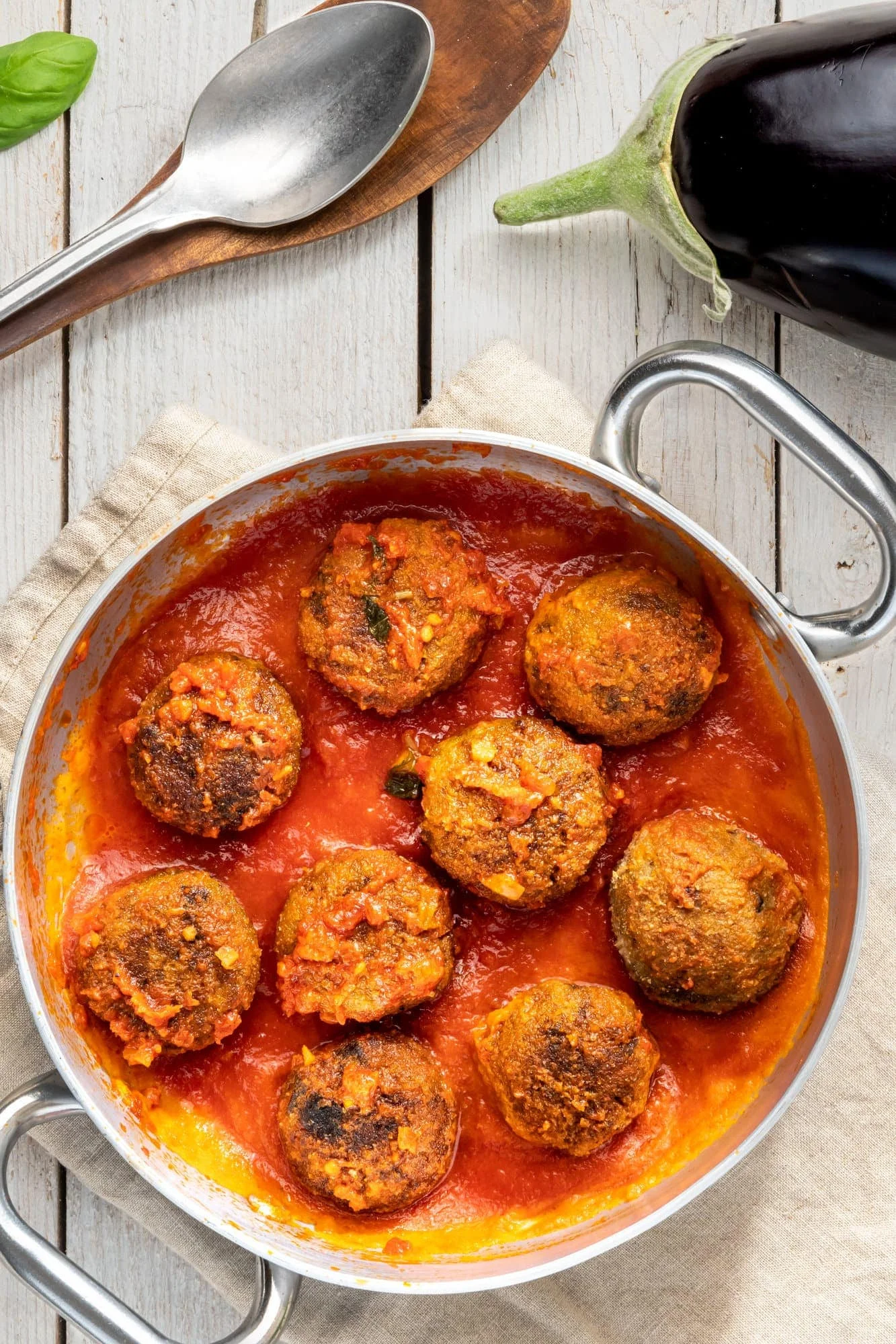 MainsEggplant Meatballs in Tomato SauceEggplant Meatballs in Tomato Sauce are a delicious twist on the classic version, enhanced with a flavorful tomato sauce. This recipe is perfect for serving a tasty summer main dish.Difficulty MediumPreparation 20 minutesCooking 20 minutesServings for Serves 4 people Send × Facebook Twitter Email Pinterest Save PrintThe Eggplant Meatballs in Tomato Sauce, also known as Eggplant Polpette in Tomato Sauce, are a delicious variation of the classic Eggplant Meatballs, enhanced in this version by a delectable Tomato Sauce accompaniment.The Eggplant Meatballs in Tomato Sauce Recipe is a flavorful option for creating a main course based on eggplants, perfect for a hearty summer lunch or dinner. It’s wonderful to savor alongside rustic bread or bruschetta. Eggplants, Parmigiano Reggiano, Breadcrumbs, and Tomato Sauce combine to deliver a summer entrée you will undoubtedly adore.With our Eggplant Meatballs with Tomato, you will bring to the table a guaranteed-success second course that will captivate all your guests. Optionally, you can also use this preparation as a sauce to cook impeccable Spaghetti with Eggplant Meatballs.Here’s a fun fact: When preparing the meatballs, craft one containing a delightful diced smoked cheese piece. This will be the lucky meatball, and whoever finds it will receive a pleasant touch of good fortune.Ingredients for Serves 4 peopleFor the Eggplant Meatballs:500 g of Eggplants1 Eggsq.b. of Bread Crumbsq.b. of Parmesan Cheeseq.b. of Table Saltq.b. of BasilFor the Tomato Sauce:400 g of Crushed Tomatoes1 costa of Celery1 Carrotsq.b. of Red Onionsq.b. of Extra Virgin Olive Oilq.b. of Table Saltq.b. of Black PepperFor Frying:q.b. of Peanut Seed OilCopy Ingredients ListOpen in AppMethodTo prepare the Eggplant Meatballs in Tomato Sauce, start by making the Tomato Sauce. In a skillet, sauté diced celery, carrot, and onion in a bit of olive oil until they are well cooked and fragrant. Once they are nicely sautéed, add the tomatoes, a little tomato paste, salt, and pepper. Stir well and let it simmer on low heat for 20-30 minutes, adding some fresh basil halfway through the cooking process for extra flavor.While the tomato sauce is cooking, wash the eggplant thoroughly. Cut off the stem and dice the eggplant. Place the diced eggplant in a skillet with a drizzle of olive oil, a glass of water, and a pinch of salt. Cook until the eggplant is soft enough to be easily mashed with a spoon. If necessary, you can add more water during the cooking process to ensure it doesn’t dry out.Once the eggplant is well cooked, let it cool down. Pass the cooked eggplant pulp through a sieve, pressing it to remove all the excess water. Transfer the eggplant pulp into a bowl and add some grated Parmigiano Reggiano, one egg, a few torn basil leaves, some breadcrumbs, and a pinch of fine salt. Mix thoroughly, adding more breadcrumbs as needed until you achieve a homogeneous and moldable mixture.Now, shape the mixture into meatballs of your preferred size, ensuring they are well coated in breadcrumbs for a crispy texture. Once all the meatballs are prepared, fry them in seed oil at 180°C (356°F), turning them halfway through cooking to ensure they are evenly cooked and golden brown on all sides.Add the fried meatballs to the Tomato Sauce and let them cook further for a few minutes, turning them occasionally to ensure they absorb the rich flavors of the sauce. Once they are ready, turn off the heat and serve your Eggplant Meatballs in Tomato Sauce hot. Finally, remember to download our App with exclusive content and fewer ads!Variations and AlternativesIf desired, you can enhance your Eggplant Meatballs in Tomato Sauce by adding some chili pepper to the tomato sauce and perhaps inserting cubes of mozzarella or smoked cheese into the center of each meatball.TipsFor a perfect outcome of Eggplant Meatballs in Tomato Sauce, it is essential to thoroughly squeeze out the flesh of the eggplants after cooking them, so that they lose as much moisture as possible.StorageThe Eggplant Meatballs in Tomato Sauce can be stored in the refrigerator for 1-2 days without any issues. We strongly advise against freezing them.Comments ★ ★ ★ ★ ★ × 4 / 5 You need to enable JavaScript to vote Cancel reply Leave a comment