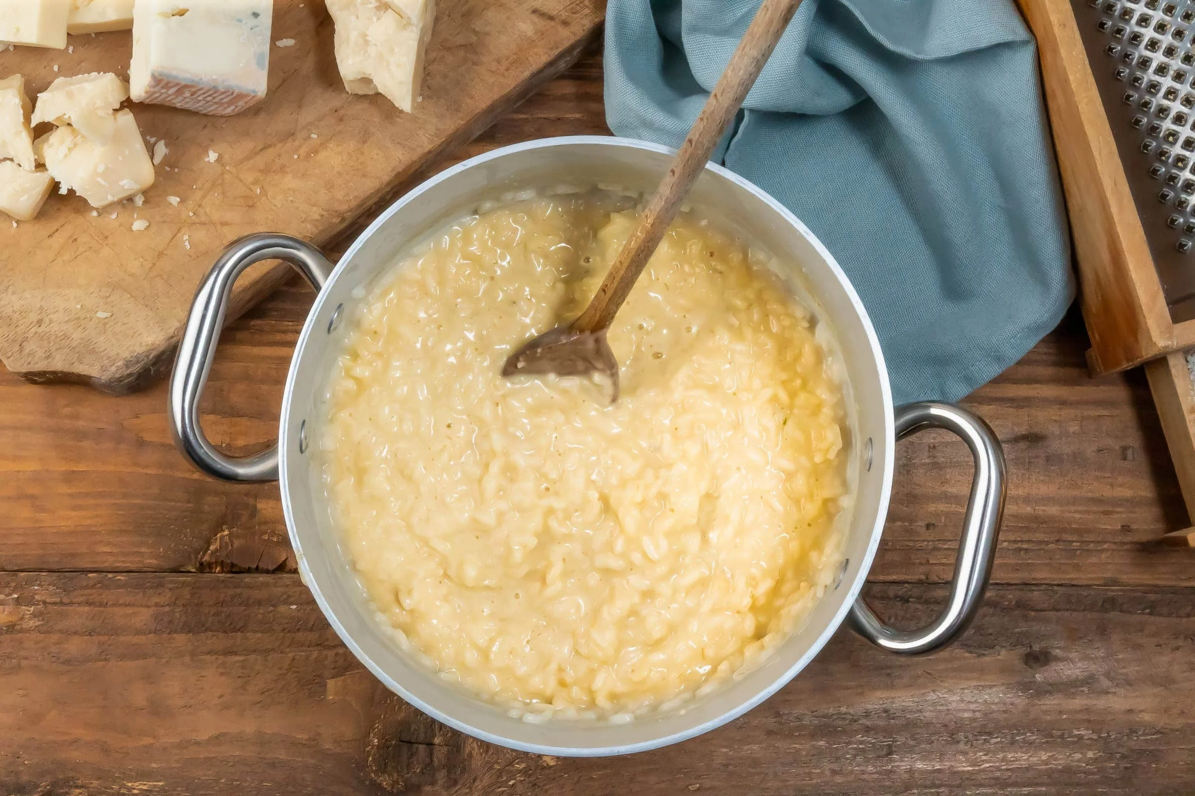 MainsFour Cheese Risotto, The Authentic Italian RecipeThe Four Cheese Risotto (Risotto ai Quattro Formaggi) is one of the most loved and appreciated risottos due to its unique taste and creaminess. Made with a mix of cheeses to taste but rich in flavor, it will win you over from the first bite.Difficulty MediumPreparation 10 minutesCooking 30 minutesServings for 4 people Send × Facebook Twitter Email Pinterest Save PrintFour Cheese Risotto, or better yet Risotto ai Quattro Formaggi as we call it in Italy, is one of the most beloved and appreciated risottos, a traditional recipe created mostly as a recipe to employ the leftover cheese in the refrigerator. Get ready to taste a first course with really a unique taste.The Risotto ai Quattro Formaggi recipe is a relatively very easy and fast recipe, a variation of the classic Parmesan Risotto (Risotto alla Parmigiana) of which it retains the preparation except for the creaming phase (mantecatura). The main difference with Parmesan Risotto is that, besides Butter and grated Parmesan, more cheese types are added to finish the dish. The cheese you should use it’s pretty much up to you (and your leftovers in the fridge) but we advise to try and use Parmesan Cheese, Emmental Cheese, Taleggio Cheese and Gorgonzola Cheese.When preparing Italian 4 Cheese Risotto it is important that you put little to no salt during cooking since the flavor will be provided by the cheeses you will use, so we recommend that you adjust the salt only after mantecatura (final creaming phase).Ingredients for 4 people350 g of Rice Carnaroli1 l of Vegetable Broth100 g of Parmesan Cheese100 g of Gorgonzola Cheese100 g of Emmental Cheese100 g of Taleggio Cheese1/2 of White Onionsto taste of White Wineto taste of Butterto taste of Extra Virgin Olive Oilto taste of Table SaltCopy Ingredients ListOpen in AppMethodTo prepare the Four Cheese Risotto start by putting some butter, a drizzle of olive oil and the finely chopped onion in a pot (or risotto pan). Let the onion brown, and when it is ready, pour in the risto and toast it over medium-high heat.When the rice is well toasted, deglaze with a glass of dry white wine; once the alcohol part has evaporated, put a pinch of salt and start adding vegetable stock a little at a time. Pour in new broth only when the previously poured broth has been absorbed by the rice.When the rice is cooked remove from the heat add a little butter, the taleggio cheese and emmental cheese made into small chunks, the gorgonzola and a good sprinkling of grated parmesan. Stir-fry well with a wooden spoon or, if you prefer, with a whisk.Taste, adjust salt if necessary and serve your Risotto ai Quattro Formaggi nice and hot accompanied by an additional sprinkling of grated Parmesan Cheese. Finally, remember to download our App with exclusive content and fewer ads!Variations and AlternativesYou can prepare your Risotto ai Quattro Formaggi with any type of cheese you prefer or have on hand. If you plan to use hard cheeses bear in mind that you will, of course, have to grate them.TipsIf for some reason the risotto should be a little too dry at the end of cooking, we recommend that you add a little vegetable broth during the mantecaura. You will be able to “recover” your risotto in no time.StorageRisotto ai Quattro Formaggi will keep in the refrigerator for 1 day without any problem.Comments ★ ★ ★ ★ ★ × 5 / 5 You need to enable JavaScript to vote Cancel reply Leave a comment hudith10 February 10, 2025 at 7:37 pm With a white risotto made with white onions and white cheese, why oh why would you brown the onions and have little dark bits floating around in your risotto. Add 2 table spoons of water to onions to help sweat them down. 10 minutes. Log in to Reply The Cooker February 10, 2025 at 7:58 pm Ciao! Thanks for your comment 😋 The onions must be browned, they must absolutely NOT turn dark. They must become “translucent”. The sautéing must last only a few seconds. This is the “Italian” 🇮🇹 way of making risotto 😉 Log in to Reply