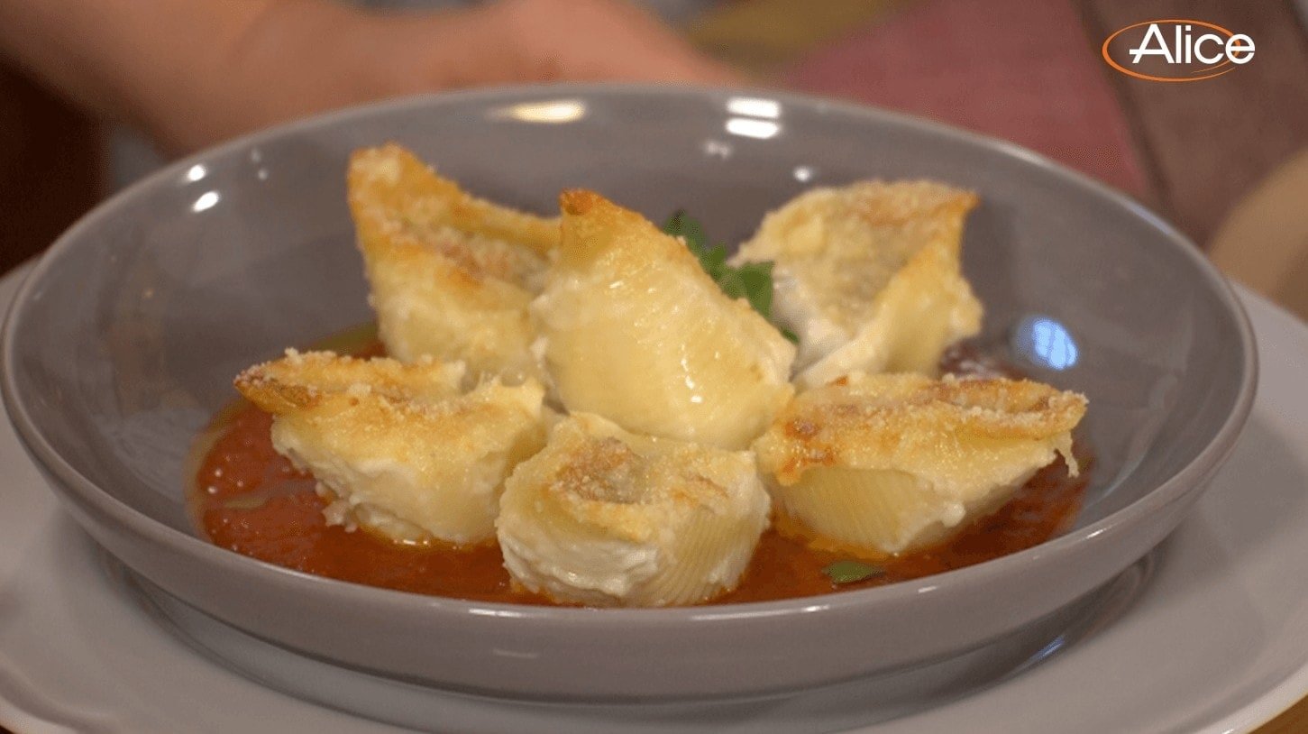 Main DishesHoliday Conchiglioni (Large Shell Pasta for Special Occasions)From the TV show "La Casa del Gusto" on Alice TV, let's prepare together Holiday Conchiglioni (Large Shell Pasta), a festive recipe by Patrizia Forlin!Difficulty MediumPreparation 1 hourCooking 4 hoursServings for 2 servings Send × Facebook Twitter Email Pinterest Save PrintStraight from the TV show “La Casa del Gusto” on Alice TV, let’s prepare together Holiday Conchiglioni by Patrizia Forlin!While the process of making this delicious dish is neither simple nor quick, if you have decent cooking experience, I’m sure you’ll be able to prepare this recipe with ease! The pasta that’s best suited for stuffing, conchiglioni (large pasta shells), is filled with delicious white wine-braised beef stew. Everything is then baked in the oven, enveloped in béchamel sauce and grated cheese. The special touch: it’s served deconstructed on a bed of tomato sauce and garnished with a fresh basil leaf.While the preparation is certainly demanding, the result is more than exceptional! My mouth is already watering!Note about ingredients: Conchiglioni are large shell-shaped pasta that can be found in Italian specialty stores or well-stocked supermarkets. If unavailable, you can substitute with jumbo pasta shells (sometimes labeled as “stuffing shells”). For the best results, use Italian brands like Barilla, De Cecco, or Garofalo.Ingredients for 2 servings250 gams of Conchiglioni1 liter of Bechamel Sauce50 gams of Grated CheeseFor the stew:1 kilogam of Veal Pulp250 gams of White Onions250 gams of Carrots250 gams of Celery200 milliliters of White Wine200 milliliters of Broth vegetableto taste of Extra Virgin Olive Oilto taste of Mixed Herbsto taste of Saltto taste of Black Pepper50 gams of Corn Starch1 Egg YolksFor serving:to taste of Tomato Sauceto taste of BasilCopy Ingredients ListOpen in AppMethodCut the beef into pieces of your desired size. Take a pot and start cooking the stew by browning the meat with a little olive oil. Then deglaze with white wine.Dice the carrots, celery, and onion and add them to the stew. Cook them and deglaze again with more white wine. Complete the cooking with broth for another 3-4 hours.Once the stew is cooked, mix cornstarch with cold water, stir and add it to the meat to thicken the stew. Cook again briefly.Beat an egg and, with the heat turned off, add it to the stew. Separately, cook the conchiglioni pasta (large shell-shaped pasta) being careful not to overcook. Mince all the stew mixture, put it in a piping bag and fill the pasta shells.Take a baking dish and create a thick layer of béchamel sauce on the bottom, place the filled conchiglioni on top, cover them with more béchamel sauce and then sprinkle generously with grated cheese.Bake in the oven at 160°C (320°F) for about 30 minutes. You can serve your Festive Conchiglioni as they are, or you can take a deep plate, create a base of tomato sauce, arrange the Conchiglioni individually in a flower pattern inside the plate, and finally garnish with a basil leaf. Finally, remember to download our App with exclusive content and fewer ads!Comments ★ ★ ★ ★ ★ × 5 / 5 You need to enable JavaScript to vote Cancel reply Leave a comment