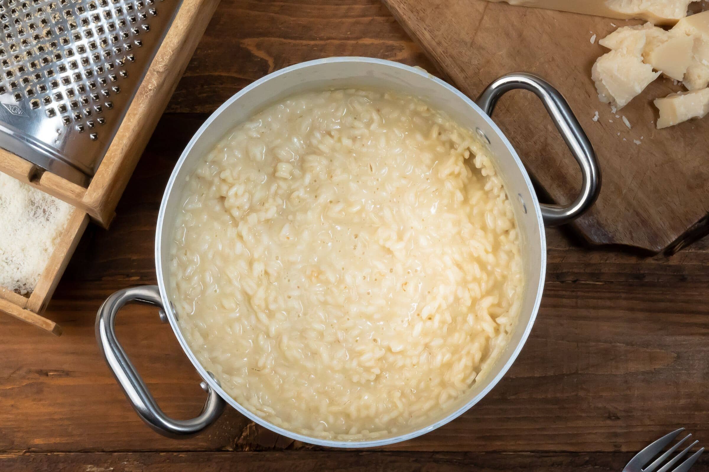 First CoursesParmesan Risotto, The Authentic Italian RecipeRisotto Parmigiana Style is a creamy first course, perfect for any occasion, that will win you over with its delicate flavor. Let's see how to prepare it!Difficulty EasyPreparation 10 minutesCooking 30 minutesServings for 4 people Send × Facebook Twitter Email Pinterest Save PrintParmesan Risotto (or Risotto Parmigiana Style) is one of those dishes that is hard to resist. Accomplice to the creaminess given by the slow cooking of the risotto and the mantecatura with butter and parmesan, each bite turns out pleasantly flavorful and velvety, while still remaining very delicate on the palate.It is precisely because of these characteristics that it is one of the most beloved risottos for children and represents a real full-bodied dish and rich in protein, also ideal to consume if you do not want to overdo it with overly elaborate dishes, but without giving up a good Creamy Risotto. To make this Risotto we suggest to use Carnaroli: a type of Italian rice known for its grain size, creamy texture, and high starch content.As we shall see, the Parmesan Risotto recipe is particularly easy to prepare and in about half an hour you will be able to serve a first course that is mouth-watering on the table. Made with a few simple ingredients, the Creamy Parmesan Risotto is characterized by a simple cooking with Vegetable Broth to which is added a rich mantecatura based on butter and abundant Parmigiano Cheese that will characterize the flavor. Nothing could be simpler, yet this risotto turns out to be truly mouthwatering and irresistible!Ingredients for 4 people350 g of Rice Carnaroli100 g of Parmesan Cheese1 l of Vegetable Broth1/2 of White Onionsto taste of Butterto taste of Extra Virgin Olive Oilto taste of White Wineto taste of Table SaltCopy Ingredients ListOpen in AppMethodTo prepare the Risotto alla Parmigiana first melt the butter over a gentle heat, then add the oil and chopped onion and sauté a few moments.Smoke with a little white wine, let the alcohol part evaporate do a first round of salt and start adding a little at a time a little broth. Remember to add new broth only when the previously poured broth has been absorbed by the rice.When the rice is cooked, turn off the flame and add grated Parmesan cheese, knob of butter and stir.Add salt if necessary and let your Risotto alla Parmigiana rest for a few moments before serving. Finally, remember to download our App with exclusive content and fewer ads!Variations and AlternativesAs an alternative to Carnaroli Rice you can also use a Arborio or a Ribe that hold up well in risottos. If desired, you can serve your Risotto alla Parmigiana with freshly ground black pepper or with chopped fresh herbs such as rosemary or sage.TipsTo make the really creamy risotto make toast the rice well until it becomes opaque again, this will serve to make it release the starches slowly during cooking; also to mix the risotto use a hand whisk, you will see that it will be even creamier and velvety.StorageThe Risotto alla Parmigiana will keep in the refrigerator, inside an airtight container, for 1 day.Comments ★ ★ ★ ★ ★ × 4 / 5 You need to enable JavaScript to vote Cancel reply Leave a comment