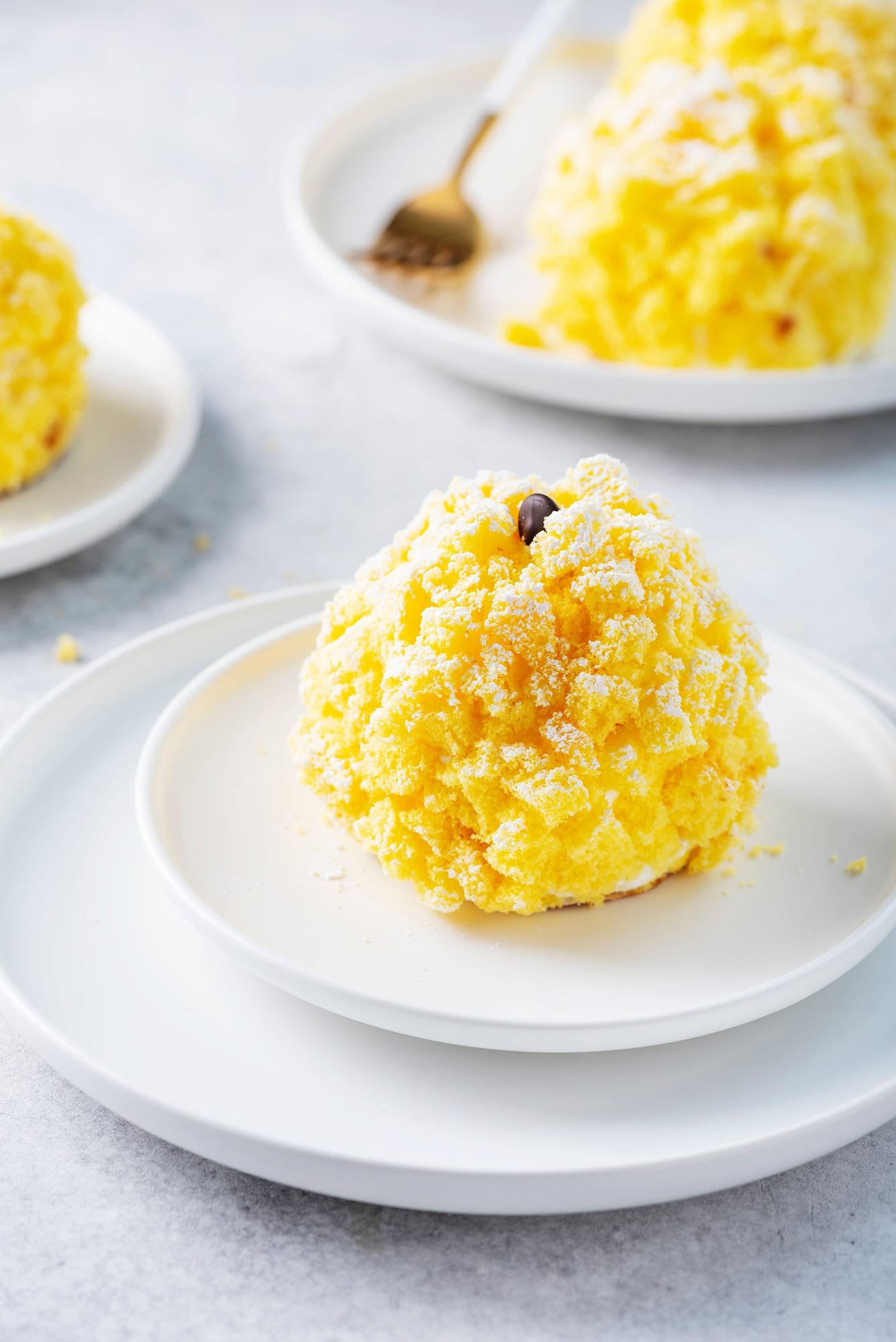 DessertsMimosa CupcakesMimosa Cupcakes are a delightful finger food version of the classic Mimosa Cake. These fragrant and colorful treats consist of sponge cake and Chantilly cream, enhanced with a flavorful Grand Marnier syrup, making them perfect for International Women's Day celebrations.Difficulty DifficultPreparation 30 minutesCooking 1 hourServings for Serves 10 Send × Facebook Twitter Email Pinterest Save PrintThe Mimosa Cupcakes are a delightful Finger Food variation of the classic Mimosa Cake, a famous cake created to celebrate women on March 8th. These mini Delicious Cupcakes, beautiful to look at and incredibly tasty, perhaps even more than the Classic Mimosa Cake, evoke the characteristic flowers of the Mimosa.The Mimosa Cupcakes Recipe is perfect for preparing a delicious Finger Food dessert for a party or an aperitif, not only for Women’s Day but also as a delightful treat for Easter lunch.As with the Pineapple Mimosa Cake, the Mimosa Cupcakes can also be enriched with Pineapple or even with Chocolate Chips to add to the layers of Chantilly Cream, which will be a delicious surprise for those who have the pleasure of tasting these exquisite Cupcakes with Sponge Cake.To perfectly prepare the Mimosa Cupcakes, it will be very useful to read our guide on the 10 Mistakes to Avoid for a Perfect Sponge Cake. If you wish, you can also prepare delicious Vegan Mimosa Cupcakes; to do so, simply use Vegan Sponge Cake, Vegan Pastry Cream, and Plant-Based Whipping Cream. The result will be extremely delightful.Ingredients for Serves 10For the Sponge Cake:250 g of White Sugar8 Eggs140 g of All Purpose Flour2 Vanilla Pods120 g of Potato Starch1 pinch of SaltFor the Pastry Cream:5 Egg Yolks125 ml of Fresh Cream175 g of White Sugar55 g of Corn Starch500 ml of Whole Milk1 Vanilla PodsFor the Chantilly Cream:100 ml of Fresh Cream10 g of Powdered SugarFor the Liquor Syrup:130 ml of Water75 g of White Sugar70 ml of Grand MarnierFor Decoration:to taste of Powdered Sugarto taste of Chocolate ChipCopy Ingredients ListOpen in AppMethodTo prepare the Mimosa Mini Cakes, start with making the sponge cake: break the eggs into a stand mixer bowl, add the vanilla bean seeds and a pinch of salt, then start mixing. Gradually add sugar and mix for about fifteen minutes until you get a fluid, homogeneous mixture that will double in volume. Stop the mixer and sift the flour and potato starch into the bowl, folding them in with a pastry spatula using upward movements until well combined.Once you have a uniform batter, pour it equally into two 8-inch (20 cm) cake pans, previously buttered and floured. Bake in the lowest rack of a preheated oven at 160°C (320°F) for about 50 minutes. Before removing from the oven, do the toothpick test to ensure they’re fully baked. Once ready, remove the sponge cakes from the oven, wait until they cool before unmolding, and let them cool completely on a cooling rack.Now prepare the Pastry Cream, which will be the base for the Chantilly Cream: split the vanilla pod, remove the seeds and set aside. Put the milk in a saucepan with the vanilla pod and heat until almost boiling. Meanwhile, beat the egg yolks with sugar and vanilla seeds in a bowl until well combined, then sift in the cornstarch while continuing to stir. When the milk is hot, remove the vanilla pod and pour a ladle of it into the egg mixture, whisking well. Transfer everything back to the saucepan with the remaining milk and cook over low heat, stirring constantly until thickened.When ready, pour the cream into a bowl, cover with plastic wrap directly on the surface, and let it cool completely first at room temperature, then in the refrigerator. Once cold, proceed with making the Chantilly cream. Put heavy cream and powdered sugar in a bowl and whip with an electric mixer until stiff peaks form. Take the pastry cream and, after softening it with a whisk, gradually fold in the whipped cream using a bottom-to-top motion to maintain the airiness. Cover with plastic wrap and refrigerate for about 30 minutes.To prepare the sponge cake soaking syrup, pour Grand Marnier into a small saucepan, add water and sugar, and heat while stirring until the sugar dissolves completely. Remove from heat, transfer to a small bowl, and let it cool.Using a sharp serrated knife, trim the sponge cakes to give them a regular shape, then cut one sponge cake horizontally into layers about 1 cm thick. Using a round cookie cutter, cut out small discs from the layers. Set aside at least half of them, and brush the others with the prepared soaking syrup, letting it absorb before starting to assemble the mini cakes.Take the first sponge disc and spread a layer of Chantilly cream on top, level it well, and place another disc on top. Spread more cream and finish with a final disc. Repeat this process until you’ve used all the prepared discs. Now cover your mini cakes with a generous layer of cream and, using a small spatula, shape them into hemispheres.Cut the remaining sponge cake into small cubes and carefully cover all your mini cakes with these crumbs. Finally, complete the Mimosa Mini Cakes by dusting them with powdered sugar and adding a small chocolate drop on top (this final touch recalls the traditional Italian Mimosa cake, which resembles mimosa flowers). Finally, remember to download our App with exclusive content and fewer ads!Variations and AlternativesIf desired, you can enrich your Mini Mimosa Cakes by adding chocolate drops between the Chantilly cream layers. You can also replace Grand Marnier with orange juice to make an alcohol-free soaking syrupTipsUsing the same quantities, you can also make the sponge cake in rectangular baking pansStorageYou can store your Mini Mimosa Cakes for up to three days in an airtight plastic container in the refrigerator or under a glass domeComments ★ ★ ★ ★ ★ × 5 / 5 You need to enable JavaScript to vote Cancel reply Leave a comment