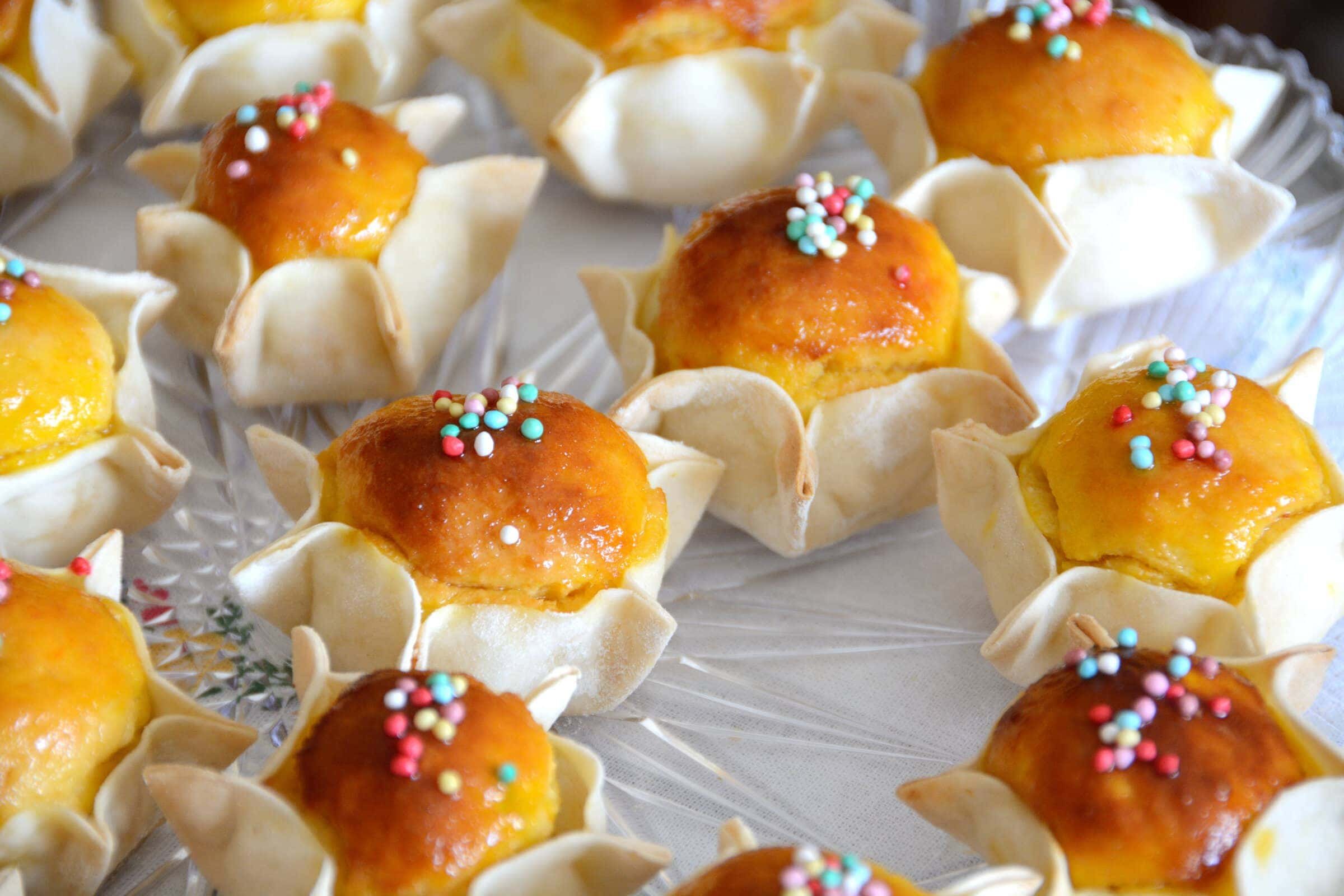 Small PastriesPardulas: Saffron and Ricotta Tarts, The Authentic Italian Sardinian RecipePardulas, also known as Formaggelle, are delicious Sardinian ricotta cheese tarts traditionally prepared during Easter celebrations. These sweet treats are a beloved part of Sardinian culinary heritage.Difficulty EasyPreparation 15 minutesCooking 40 minutesServings for Serves 8 Send × Facebook Twitter Email Pinterest Save PrintThe Pardulas Sarde, often also called Formaggelle, are delightful sweets from the culinary tradition of Sardinia, typically prepared during the Easter holidays. Easy to make, these Sardinian Ricotta Desserts are perfect to serve at any time of the day.Not to be confused with Casadinas Sarde, the Pardulas are delicious baskets made of Semolina dough that encase a soft filling made of Sheep Ricotta, Sugar, Orange Zest, Lemon Zest, and Saffron. To make them even more indulgent, they are decorated with a topping of Honey and Colored Sugar Sprinkles!If you love Traditional Easter Dessert Recipes, don’t miss out on Easter Cookies, Rice Cake, and Neapolitan Pastiera! Now let’s discover together the recipe for the Pardulas Sarde!Ingredients for Serves 8For the Basket:200 g of Semolina100 g of Water30 g of LardFor the Filling:500 g of Pecorino Cheese100 g of Sugar60 g of Semolina26 g of Egg Yolks0.25 g of Saffron1 Lemon Peel1 Orange PeelFor Decoration:to taste of Honeyto taste of Colored PastaCopy Ingredients ListOpen in AppMethodTo prepare Sardinian Pardulas, start by draining the ricotta cheese overnight to remove all excess liquid.The next day, begin making the pastry shells. In a bowl, combine semolina flour and lard, working with your hands until the mixture becomes crumbly. Continue kneading while gradually adding water until you obtain a smooth and homogeneous dough.Form the dough into a ball, wrap it in plastic wrap, and let it rest at room temperature while you continue with the recipe.Proceed with making the filling. Place the drained ricotta in a bowl, add sugar, and mix with a whisk until smooth and well combined.Add egg yolks, semolina flour, saffron, lemon zest, and orange zest. Mix with a whisk until you achieve a uniform mixture. Cover with plastic wrap and let it rest in the refrigerator.Take the dough and roll it out with a rolling pin until you get a sheet about one millimeter thick. Using a 6-centimeter (2.4-inch) round cookie cutter, cut out as many circles as possible.Place a spoonful of filling in the center of each dough circle, trying to shape it as round as possible. Close the dough around the filling, pinching it to form a small basket shape.As you make them, place the pastries on a baking sheet lined with parchment paper. Bake in a preheated conventional oven at 150°C (300°F) for about 40 minutes.Once baked, remove from the oven, brush with honey, decorate with colored sprinkles, and serve your Sardinian Pardulas! Finally, remember to download our App with exclusive content and fewer ads!Variations and AlternativesYou can substitute the lard (strutto) with the same amount of butter if preferred.TipsFor the best results when making Sardinian Pardulas, make sure to use well-drained ricotta cheese. Using ricotta that’s too wet could compromise the final texture of these traditional pastries.StorageLeftover Sardinian Pardulas can be stored in an airtight container in the refrigerator for up to two days. They can also be frozen after baking if desired.Comments ★ ★ ★ ★ ★ × 5 / 5 You need to enable JavaScript to vote Cancel reply Leave a comment