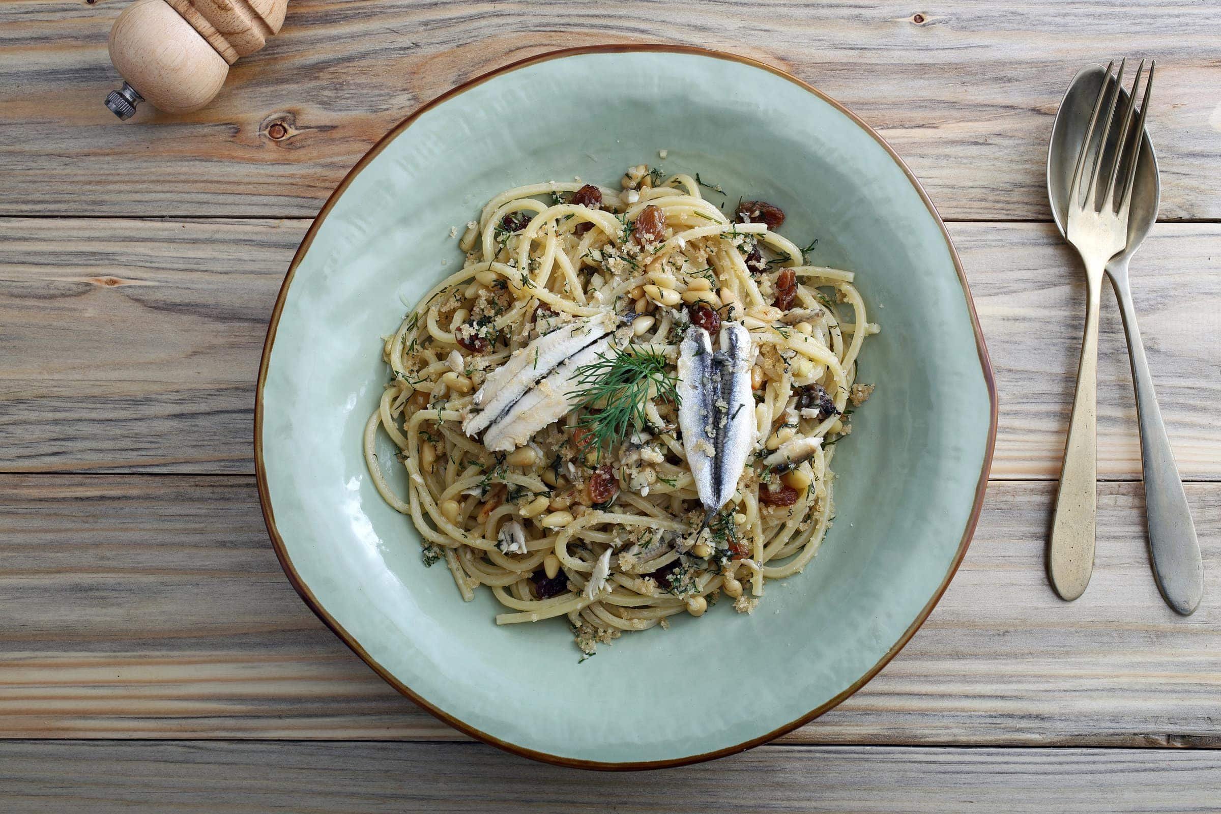 PastaPasta with SardinesPasta with Sardines is a traditional Italian dish from Sicily. Flavorful and hearty, it's a pasta dish enriched with delicious ingredients.Difficulty MediumPreparation 40 minutesCooking 35 minutesServings for Serves 4 Send × Facebook Twitter Email Pinterest Save PrintPasta with Sardines (Pasta con le Sarde) is a traditional Italian dish from Sicily with numerous variations. Every family has its own recipe, and the ingredients may slightly vary depending on the city, as there isn’t a single “classic recipe” for Pasta with Sardines. However, this Sicilian pasta dish is absolutely worth trying at least once in your lifetime!Flavorful and hearty, our version of Pasta with Sardines and Wild Fennel is made with truly delicious ingredients! To prepare it, you’ll need Fresh Sardines, Bucatini (thick spaghetti-like pasta with a hole running through the center), Wild Fennel (if unavailable, use regular fennel fronds mixed with a pinch of fennel seeds), Raisins, Crushed Almonds, Pine Nuts, Anchovies, and Saffron. To complete the dish, a tasty topping made with crispy Breadcrumbs!If, besides Pasta with Fresh Sardines, you’d like to try other Sicilian Pasta Dishes, don’t miss the Pasta with Cauliflower, Pasta alla Norma, and Pasta with Pistachio and Pancetta Pesto! And now, let’s move on to the Pasta with Sardines recipe!Ingredients for Serves 4500 g of Sardines Already cleaned320 g of Bucatini180 g of Fennel Fronds Wild80 g of Onions Golden70 g of Water50 g of Extra Virgin Olive Oil30 g of White Bread30 g of Almonds Chopped25 g of Pine Nuts0,1 g of Saffron5 Anchovies In saltq.b. of Table Saltq.b. of Black PepperFor the Breadcrumbs:30 g of Bread Crumbs10 g of Extra Virgin Olive OilCopy Ingredients ListOpen in AppMethodTo prepare Pasta with Sardines (Pasta con le Sarde), a traditional Sicilian dish, start by soaking the raisins in some water for about ten minutes.Peel and finely chop the onion, then place it in a non-stick pan with a drizzle of olive oil. Add the anchovies and cook over low heat for about 10 minutes, stirring frequently.Dissolve the saffron in 700 grams of water, stirring with a fork. Pour it into the pan and add the sardines, the drained and rinsed raisins, chopped almonds, and pine nuts.Stir to evenly distribute all ingredients and cook over low heat for another 10 minutes.Meanwhile, bring a large pot of water to boil and cook the wild fennel (finocchietto selvatico, a typical Sicilian ingredient) for a couple of minutes. Once ready, remove it with a slotted spoon, place it in a bowl to cool, and reserve the cooking water.Squeeze the fennel, compact it, finely chop it and add it to the pan with the other ingredients. Season with salt, add a pinch of pepper, stir to combine and continue cooking.Meanwhile, cook the bucatini pasta in the water where you boiled the fennel, so it will absorb more flavor.While the pasta cooks, prepare the breadcrumb topping (known as ‘muddica’ in Sicilian cuisine) by toasting breadcrumbs in a non-stick pan with extra virgin olive oil. Keep stirring during cooking to prevent the bread from burning. Once golden, turn off the heat.Drain the pasta al dente and add it to the pan with the other ingredients. Toss until fully cooked, stirring to combine all ingredients together.Plate the pasta, evenly distribute the toasted breadcrumbs on top, and serve the Pasta con le Sarde while hot! Finally, remember to download our App with exclusive content and fewer ads!Variations and AlternativesThere are many variations of Pasta with Sardines! For example, you can substitute Bucatini with Perciatelli or Cannolicchi pasta. If you prefer, you can omit the Saffron and add some Tomato Paste instead.TipsIf you’re not experienced in cleaning fish, we recommend buying pre-cleaned sardines or asking your trusted fishmonger to clean them for you.StoragePasta with Sardines (Pasta con le Sarde) is best enjoyed immediately after preparation. However, if you have leftovers, you can store them in an airtight container in the refrigerator for up to one day.Comments ★ ★ ★ ★ ★ × 5 / 5 You need to enable JavaScript to vote Cancel reply Leave a comment
