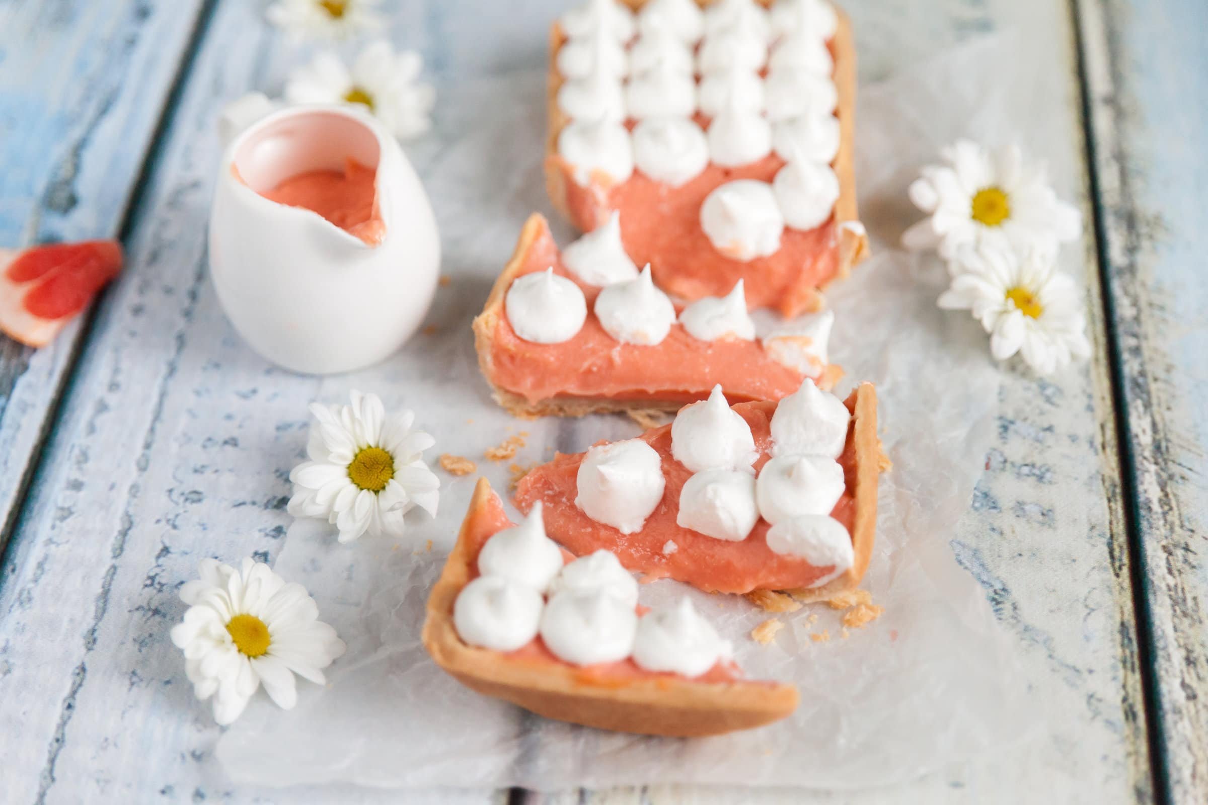 DessertsPink Grapefruit Meringue TartPink Grapefruit Meringue Tart is a delightful dessert with a sweet and tangy flavor and a stunning presentation, perfect for special occasions.Difficulty MediumPreparation 30 minutesCooking 1 hourServings for 8 servings Send × Facebook Twitter Email Pinterest Save PrintThe Pink Grapefruit Meringue Tart is a delicious dessert that originates as a variation of the Lemon Meringue Pie. With its sweet and sour taste, this Grapefruit Tart features a base of Shortcrust Pastry filled with a Grapefruit Cream and topped with a soft Meringue Cream.With its decidedly scenic appearance, the Pink Grapefruit Meringue Tart is perfect for serving during special occasions, such as birthdays, dinners with friends, or holidays. The originality of this Grapefruit Tart will win over all your guests!If you love Unique Tart Recipes, don’t miss out on the Custard and Jam Tart, Fig and Almond Tart, and Chocolate and Caramel Tart! And now, here’s the recipe for the Pink Grapefruit Meringue Tart!Ingredients for 8 servingsFor the Shortcrust Pastry:8 oz of All Purpose Flour4.2 oz of Butter3.5 oz of Sugar2 Egg Yolks1/2 of Vanilla Pods1/2 teaspoon of Pandorinoto taste of Table SaltFor the Pink Grapefruit Cream:10.6 oz of Sugar7 oz of Butter6.7 oz of Grapefruit Juice Pink5 Eggs1to taste of WaterFor the Meringue:6.7 oz of Sugar3.2 oz of Egg Whites1 oz of WaterCopy Ingredients ListOpen in AppMethodTo prepare the Pink Grapefruit Meringue Tart, start by making the shortcrust pastry. Pour the sugar into a large bowl, add the vanilla bean seeds, then add the softened butter cut into cubes and work until well combined.Add the egg yolks, flour, baking powder, and a pinch of salt. Mix quickly without overworking until you get a homogeneous dough. Form into a disk, wrap in plastic wrap and let it rest in the refrigerator for about 30 minutes.After the resting time, briefly work the dough again. Roll it out with a rolling pin until you get a sheet that’s a few millimeters thick.Butter and flour a tart pan. Line it with the pastry, pressing well to ensure it adheres and trimming excess dough from the edges. Prick the bottom with a fork, cover with parchment paper and distribute ceramic baking beans evenly.Bake in a preheated oven at 180°C (356°F) for about 25 minutes. After this time, remove the beans and parchment paper, then continue baking for another 5 minutes.Meanwhile, proceed with making the grapefruit cream. Start by soaking the gelatin sheets in cold water for about 10 minutes.Pour the pink grapefruit juice into a saucepan and heat it. In a large bowl, whisk together sugar and eggs until slightly whipped.Pour the whipped mixture into the grapefruit juice and continue cooking until almost boiling. Then turn off the heat and let it cool slightly.Meanwhile, heat the gelatin with a drop of hot water until dissolved. Add it to the grapefruit mixture, along with the cold butter cut into cubes. Stir until you get a smooth cream and let it cool completely.When the shortcrust base has completely cooled, remove it from the pan and place it on the serving plate. Fill it with the cooled grapefruit cream, leveling the surface well with a spatula.Now proceed with making the meringue. Pour 90 grams of sugar into a saucepan, add water and cook until reaching a temperature of 106°C (223°F), checking with a food thermometer.Continue cooking the syrup until it reaches 121°C (250°F). Meanwhile, put the remaining sugar in a bowl, add the egg whites and beat with an electric mixer.When the syrup reaches 121°C (250°F), pour it in a thin stream into the bowl with the egg whites, continuing to beat with the electric mixer. Work until you get a smooth, glossy, and firm Italian meringue.Transfer the meringue to a piping bag and decorate the tart with evenly-sized swirls. Your Pink Grapefruit Meringue Tart is now ready to be served! Finally, remember to download our App with exclusive content and fewer ads!Variations and AlternativesThis Meringue Tart can also be made with yellow grapefruits instead of pink ones. However, pink grapefruits tend to be sweeter and provide a more appealing color to the final dessert.TipsTo make the Pink Grapefruit Meringue Tart even more delicious, you can lightly torch the meringue using a culinary torch or kitchen blowtorch.StorageThe Pink Grapefruit Meringue Tart can be stored in an airtight container in the refrigerator for up to two days.Comments ★ ★ ★ ★ ★ × 5 / 5 You need to enable JavaScript to vote Cancel reply Leave a comment