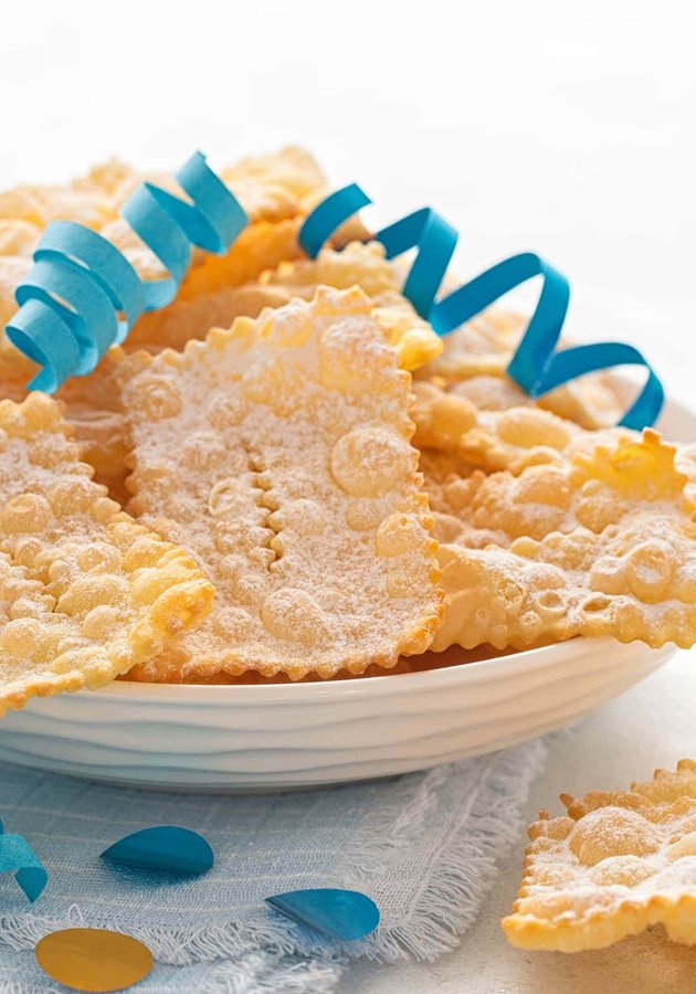 DessertsTraditional Italian CrostoliErrore nella risposta:Difficulty MediumPreparation 10 minutesCooking 5 minutesServings for Serves 6 Send × Facebook Twitter Email Pinterest Save PrintCrostoli are a traditional fried sweet typical of Carnival in Veneto, Friuli Venezia Giulia, and Trentino, where, like all traditional recipes, they can vary from family to family.The Crostoli Recipe is very similar to the recipe for Chiacchiere or Frappe, a Simple and Quick Carnival Recipe where a dough made from eggs, flour, sugar, butter, white wine, and grappa creates thin sheets, cut into scalloped rectangles and fried; all finished with a generous dusting of powdered sugar. Known also as Galani in Venice and Padua, these Homemade Crostoli are really easy to prepare and perfect for celebrating Carnival days to the fullest.We propose the traditional recipe that includes the use of white wine and grappa as liquid elements, but if you wish, you can replace the wine with a little milk, which you should add gradually while kneading until you achieve the perfect consistency.Ingredients for Serves 6500 gams of All Purpose Flour80 milliliters of White Wine50 gams of Butter Soft50 milliliters of Grappa25 gams of White Sugar2 Eggs1 packet of Vanilla1 LemonA pinch of Table Saltto taste of Powdered Sugarto taste of Peanut Seed OilCopy Ingredients ListOpen in AppMethodTo prepare Carnival Crostoli (Italian fried pastries), place flour, sugar, vanilla powder, grated lemon zest, a pinch of salt, softened butter cut into pieces, eggs, white wine, and grappa in a bowl. Knead everything using a stand mixer or by hand.When the dough appears smooth, soft, and elastic, form it into a ball, wrap it in plastic wrap, and let it rest in the refrigerator for 20-30 minutes.Once the dough has rested, take it out and tear off a piece. Slightly flatten it with your hands and then start working it through a pasta machine (pasta roller). Pass it through the rollers multiple times, reducing the thickness with each pass until you obtain a thin sheet.Using a fluted pastry wheel, cut the dough into rectangles of approximately 4×2 inches (10×5 cm), then make a cut in the center of each rectangle, without reaching the edges. Place the rectangles on a floured work surface and continue with the same procedure until all the dough is used.Fry the rectangles in plenty of hot vegetable oil at 170°C (338°F) for perfect frying. Brown the Carnival Crostoli evenly, remove them with a slotted spoon and place them on paper towels to remove excess oil. Dust with powdered sugar and your Carnival Crostoli are ready to be served and enjoyed. These sweet treats are traditionally served during the Italian Carnival season. Finally, remember to download our App with exclusive content and fewer ads!Variations and AlternativesIf you prefer, you can substitute the white wine with milk, which should be added gradually while kneading until you obtain a smooth and homogeneous dough.TipsIf you have space, you can let the shaped Crostoli (Italian Carnival pastries) rest in the refrigerator for a few minutes before frying. The thermal shock between the cold Carnival Crostoli and the hot oil will make them puff up and achieve a perfect golden color.StorageCarnival Crostoli can be stored in a paper bag for 2-3 days without any issues.Comments ★ ★ ★ ★ ★ × 4 / 5 You need to enable JavaScript to vote Cancel reply Leave a comment