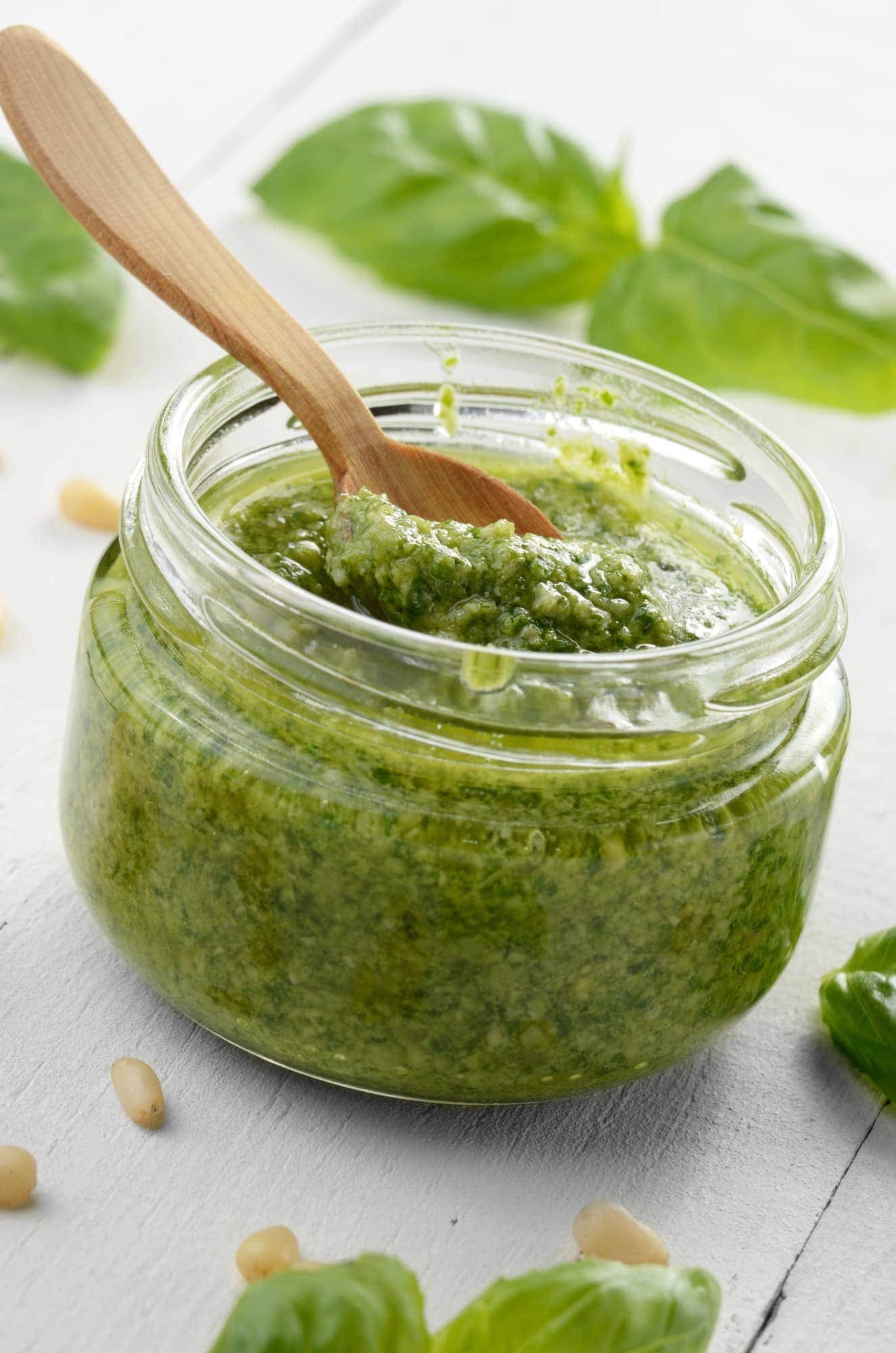 Condiments & SaucesVegan Basil PestoSubstituting cheese in the traditional Pesto Genovese recipe is easier than you might imagine. In fact, all you need is flaked nutritional yeast to make a Vegan Basil Pesto suitable for seasoning your pasta dishes.Difficulty EasyPreparation 5 minutesServings for 4 people Send × Facebook Twitter Email Pinterest Save PrintThe Genovese Pesto is one of the cornerstones of traditional Italian cuisine whose ingredients are strictly codified. The idea of proposing Vegan Basil Pesto stems from the need to replace Parmesan and make a version also suitable for those who follow a vegan diet.To replace the cheese, the Recipe for Vegan Pesto calls for the use of Food Yeast Flakes, that is, deactivated yeast whose flavor is reminiscent of cheese. The other ingredients, however, remain unchanged: Basilico, Garlic, Oil and Pine Nuts, as well as a generous pinch of coarse salt. The Vegan Genovese Pesto can be prepared either in a mortar, as traditionally, or with a food processor, and used to season your pasta dishes.If you are looking for some ideas for using your freshly prepared Vegan Basil Pesto to make some tasty vegan pasta dishes, take inspiration from our recipes for the Spaghetti with Pesto and Green Beans, from the Risotto al Pesto or the scenic Bread Crown with Pesto.Ingredients for 4 people50 g of Basil90 g of Extra Virgin Olive Oil30 g of Nutritional Yeast15 g of Pine Nuts1 clove of Garlicto taste of Coarse SaltCopy Ingredients ListOpen in AppMethodScarica la nostra APP Con meno pubblicità, puoi creare i tuoi ricettari e ricevere nuove ricette ogni giorno. Scarica APP To prepare the Vegan Basil Pesto, put the garlic and coarse salt in a mortar and start pounding it into a cream.Then add the pine nuts and continue pounding until they are blended.Add the basil and a few more grains of salt and continue to pound in circular motions until you get a sort of cream. Help yourself by drizzling in the oil and, lastly, scent with the nutritional yeast.Your vegan pesto alla genovese is ready to be used to season the most delicious pasta dishes. Finally, remember to download our App with exclusive content and fewer ads!Variations and AlternativesIt is possible to replace the pine nuts in the original recipe with other nuts as desired, while lying the proportion unchanged.TipsIf you don’t have a mortar, you can put all the ingredients in a food processor and blend, adding the oil in a flush. In this case we recommend that you also add an ice cube so as to preserve the bright green color of the basil.StorageVegan Basil Pesto can be stored in a glass jar covered with a drizzle of extra virgin olive oil for 3-4 days. Alternatively, freeze it in glass jars already portioned.Comments ★ ★ ★ ★ ★ × 4 / 5 You need to enable JavaScript to vote Cancel reply Leave a comment