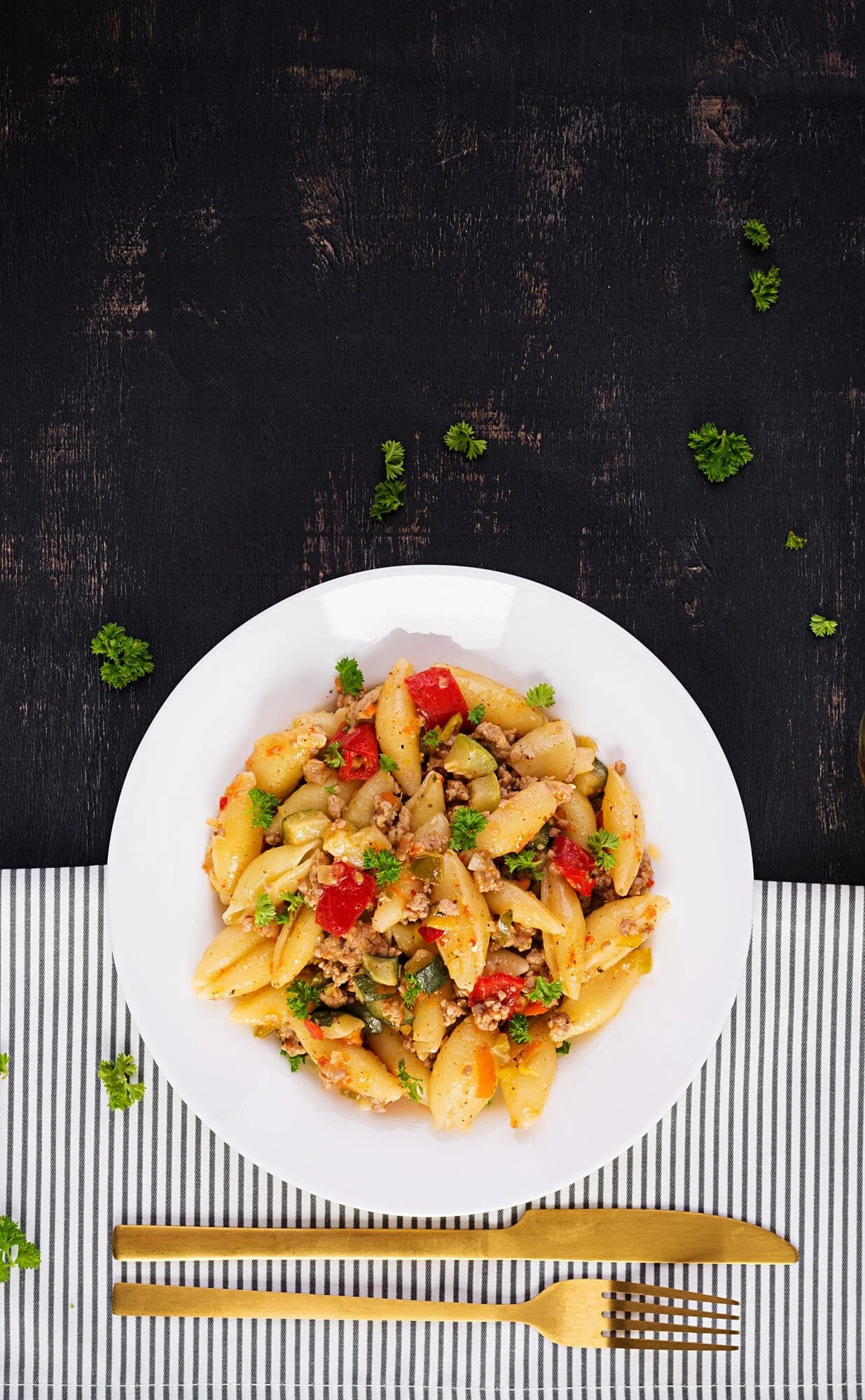 PastaWhite Ragù Pasta with ZucchiniWhite Ragù Pasta with Zucchini is a delicious pasta dish that's incredibly easy to prepare and guarantees great results every time. It offers a unique and creative twist on the classic zucchini pasta, making it a refreshing alternative to traditional recipes.Difficulty EasyPreparation 15 minutesCooking 30 minutesServings for 4 servings Send × Facebook Twitter Email Pinterest Save PrintThe Pasta with White Ragù and Zucchini is a delicious first course that is incredibly easy to prepare and guarantees fantastic results. This recipe allows you to create a Pasta with Zucchini dish that is different from the usual and perfect for a flavorful lunch or dinner.The Ground Veal, Zucchini, and Red Bell Pepper come together to create a recipe with a delicate yet traditional flavor profile. The preparation of the Veal Ragù with Zucchini is very similar to the Tuscan White Ragù Recipe, blending tradition with a touch of innovation.If you’re looking for a Dinner Recipe that is both tasty and quick, the Pasta with White Ragù, Zucchini, and Bell Peppers is just what you need; easy and fast, it will win you over from the very first bite.Ingredients for 4 servings500 g of Pasta Shells500 g of Ground Veal2 Zucchini1 Red Pepper1 Carrots1 stalk of Celery1 clove of Garlic1/2 of White Onionsq.b. of Curly Parsleyq.b. of Saltq.b. of Extra Virgin Olive Oilq.b. of White WineCopy Ingredients ListOpen in AppMethodTo prepare Pasta with White Meat Sauce and Zucchini, start by dicing the carrot, celery stalk, and half white onion. Sauté these ingredients along with a clove of garlic in a pan with some olive oil.Add the ground meat to the sautéed vegetables and brown it well, using a wooden spoon to break it up into small pieces. Deglaze with some white wine, and once the alcohol has evaporated, season with fine salt.Cut the red bell pepper into small pieces and dice the zucchini. Add the bell pepper pieces to the pan with the meat, cook for a few minutes, then add the diced zucchini. Adjust the salt and finish cooking with the lid on. The vegetables should remain crisp-tender, not overcooked.When the pasta is cooked al dente, drain it and add it to the pan with the white meat sauce, zucchini, and peppers. Toss everything together, adding some pasta cooking water as needed. Sprinkle with fresh curly parsley and serve your Pasta with White Meat Sauce and Zucchini hot. Finally, remember to download our App with exclusive content and fewer ads!Variations and AlternativesIf you wish, you can enrich your White Ragù and Zucchini Pasta with finely chopped chili pepper. For a creamier version, you can add 7 oz (200g) of fresh Robiola cheese to the ragù to create a delicious Creamy White Ragù and Zucchini Pasta.TipsIf you don’t particularly like shell-shaped pasta, we suggest using any short pasta shape that pairs well with this type of sauce.StorageThe White Ragù and Zucchini Pasta can be stored in the refrigerator for 1-2 days. You can reheat it either in the microwave or pan-fry it with a drizzle of olive oil.Comments ★ ★ ★ ★ ★ × 5 / 5 You need to enable JavaScript to vote Cancel reply Leave a comment