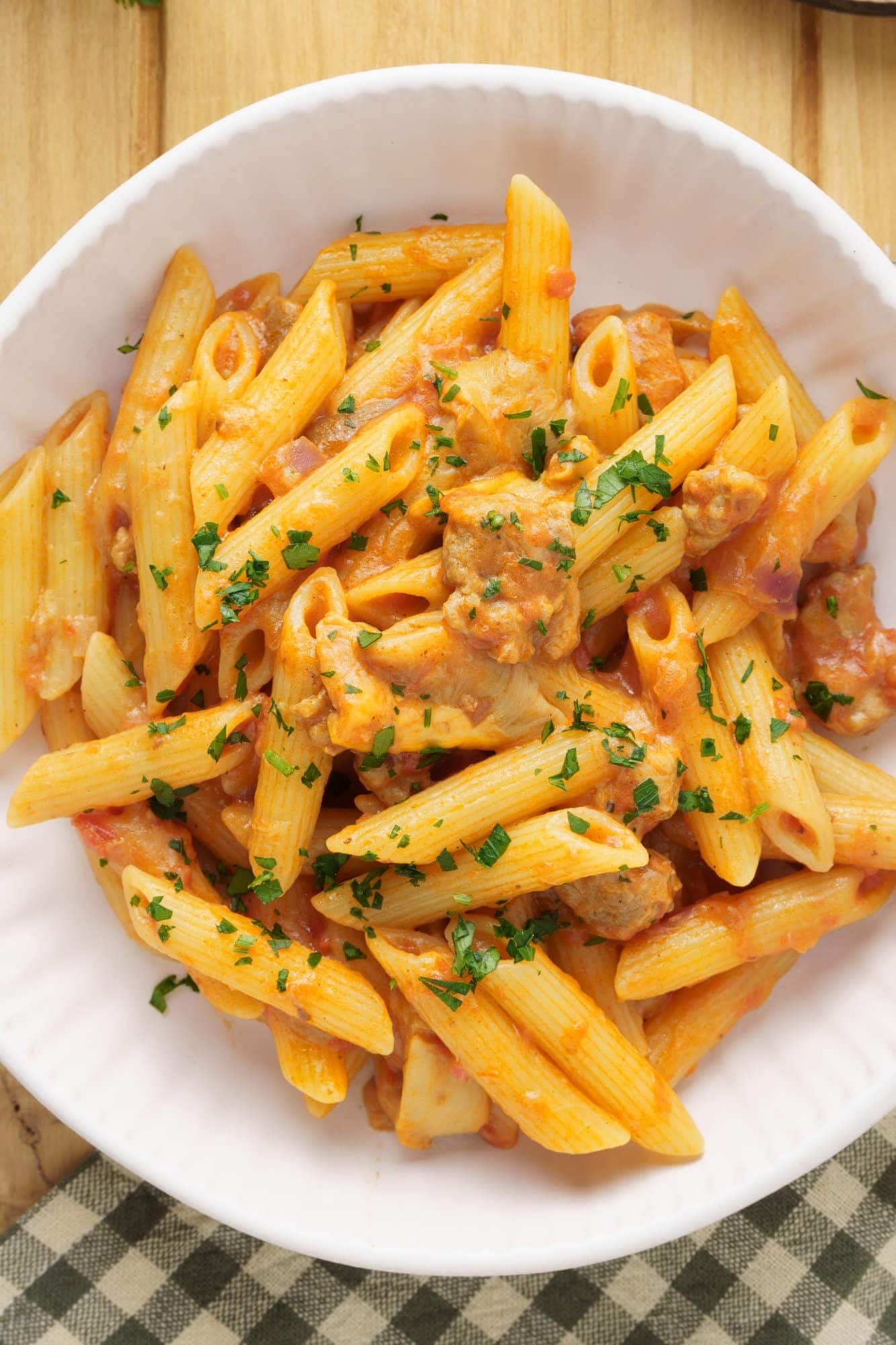PastaWoodcutter’s PastaWoodcutter's Pasta is a quick and easy first course with autumnal flavors, prepared with seasonal ingredients! A hearty pasta dish that will win you over from the very first bite.Difficulty EasyPreparation 10 minutesCooking 30 minutesServings for Serves 4 Send × Facebook Twitter Email Pinterest Save PrintWoodcutter’s Pasta is a rich and tasty first course that’s quick and easy to prepare! The Woodcutter’s Sauce has a typical autumn flavor because it’s made with seasonal ingredients like Mushrooms.There isn’t a single Original Recipe for Woodcutter’s Pasta as it varies significantly from region to region in Italy. In some areas, people prepare Woodcutter’s Pasta with Bacon, while in others, they prefer to use Italian Sausage. Whether you choose Smoked Pancetta (Italian-style bacon) or Italian Sausage, Penne alla Boscaiola is a hearty first course perfect for cold autumn or winter days.Among the different variations of this recipe, we can’t forget the Woodcutter’s Pasta Without Cream (which is basically pasta with a Sausage and Mushroom Sauce) and the Woodcutter’s Pasta with Peas, where canned peas are added towards the end of the sauce cooking time.In this recipe, we’ll show you how to make Woodcutter’s Pasta with Italian Sausage, but if you’d like to try the bacon version, just follow the same steps and timing, substituting Smoked Pancetta (or regular bacon if pancetta is not available) for the Italian Sausage.Ingredients for Serves 4360 gams of Pasta Penne350 gams of Mushrooms250 gams of Italian Sausages350 milliliters of Sieved Tomatoes1 tablespoon of Tomato Paste40 gams of Fresh Cream1/2 glass of White Wineto taste of Parsleyto taste of Red Onionsto taste of Butterto taste of Extra Virgin Olive Oilto taste of Saltto taste of Black PepperCopy Ingredients ListOpen in AppMethodTo prepare Pasta alla Boscaiola (Woodcutter’s Pasta), start by removing the casing from the Italian sausage, break it into small chunks and brown it well in a pan.Once the sausage is well browned, remove it and set aside. In the same pan, sauté finely chopped onion with a tablespoon of olive oil and a knob of butter.After cleaning and slicing the mushrooms, add them to the pan and sauté for a few moments. Season with salt and pepper, then deglaze with white wine.Add the tomato puree and a tablespoon of tomato paste, mix well and let it simmer over low heat for 10-15 minutes.When the sauce has thickened, add back the sausage chunks and the cooking cream. Mix everything well and let it cook over low heat for a few minutes.Cook the pasta in plenty of salted boiling water until al dente, drain and add it to the sauce with mushrooms, tomato, and sausage. Continue cooking for 1 minute to combine the flavors.Finely chop fresh parsley, sprinkle it over the pasta, mix well, and your Pasta alla Boscaiola is ready to be served hot. Finally, remember to download our App with exclusive content and fewer ads!Variations and AlternativesTo make your Pasta alla Boscaiola even more flavorful, you can add black olives, green peas, or smoked pancetta (Italian bacon). These additions are common variations in different Italian regions.TipsFor the best Pasta alla Boscaiola (Woodsman’s Pasta), I recommend using ridged pasta shapes like penne or rigatoni, as they better hold the creamy sauce. If you prefer long pasta, tagliatelle or pappardelle would be excellent choices.StorageYou can store Pasta alla Boscaiola in an airtight container in the refrigerator for up to two days. When reheating, you may need to add a splash of milk or cream to restore the sauce’s creamy consistency.Comments ★ ★ ★ ★ ★ × 5 / 5 You need to enable JavaScript to vote Cancel reply Leave a comment